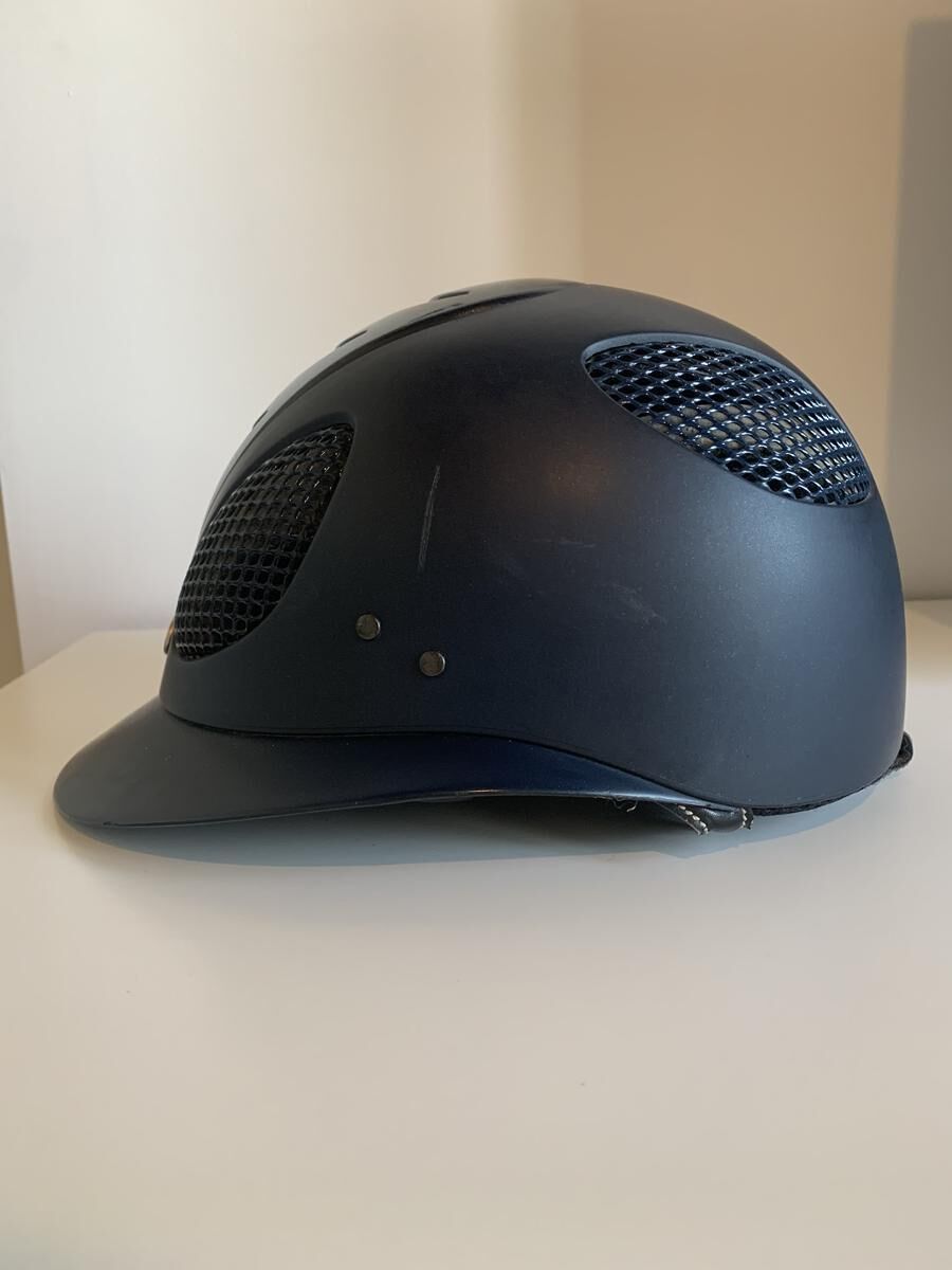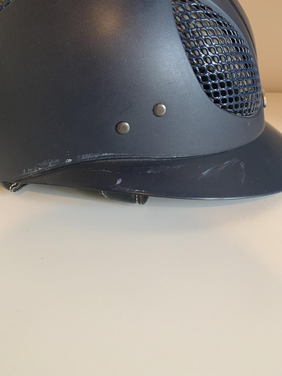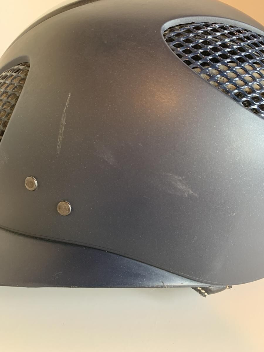 Elle est légèrement rayée sur un côté et une partie de visière, quelques marques d’usure mais qui ne gêne en aucun cas a son utilisation et a son confort !