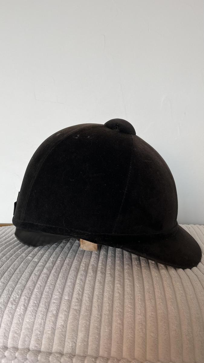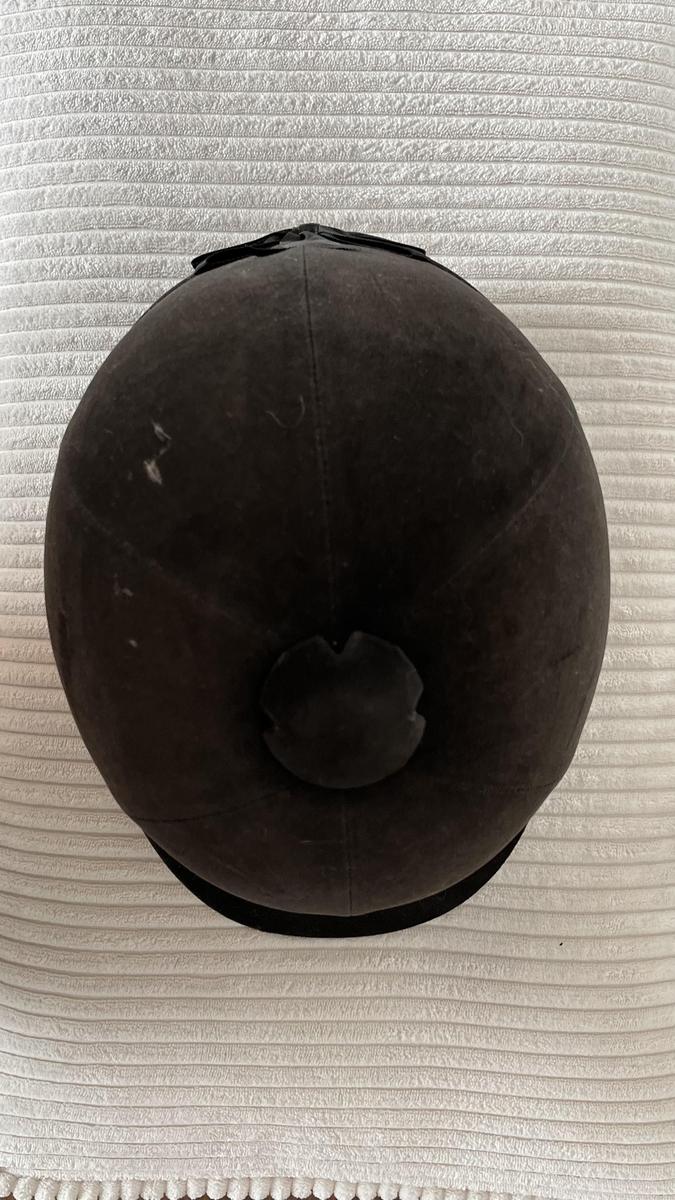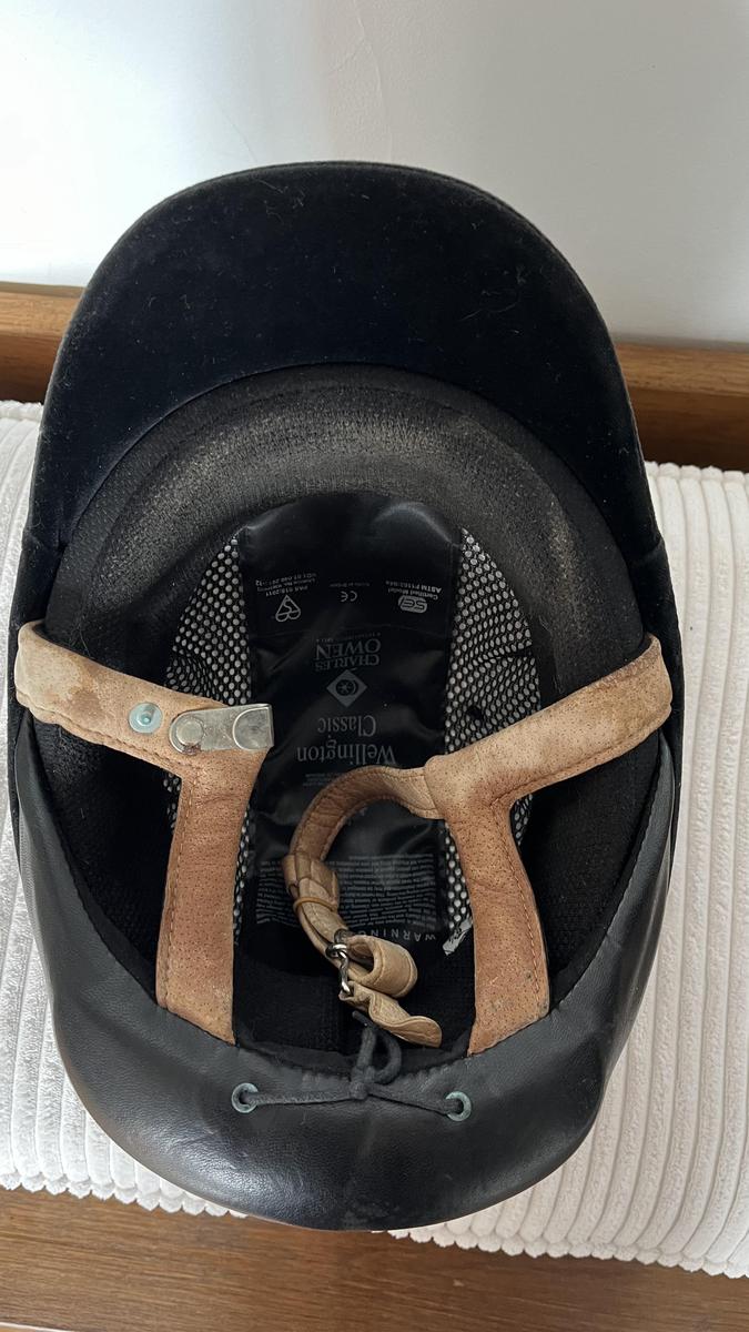 Bombe Charles Owen en état correct, trace de crocs sur le dessus et tache sur les lanières mais le reste est en bon état.
