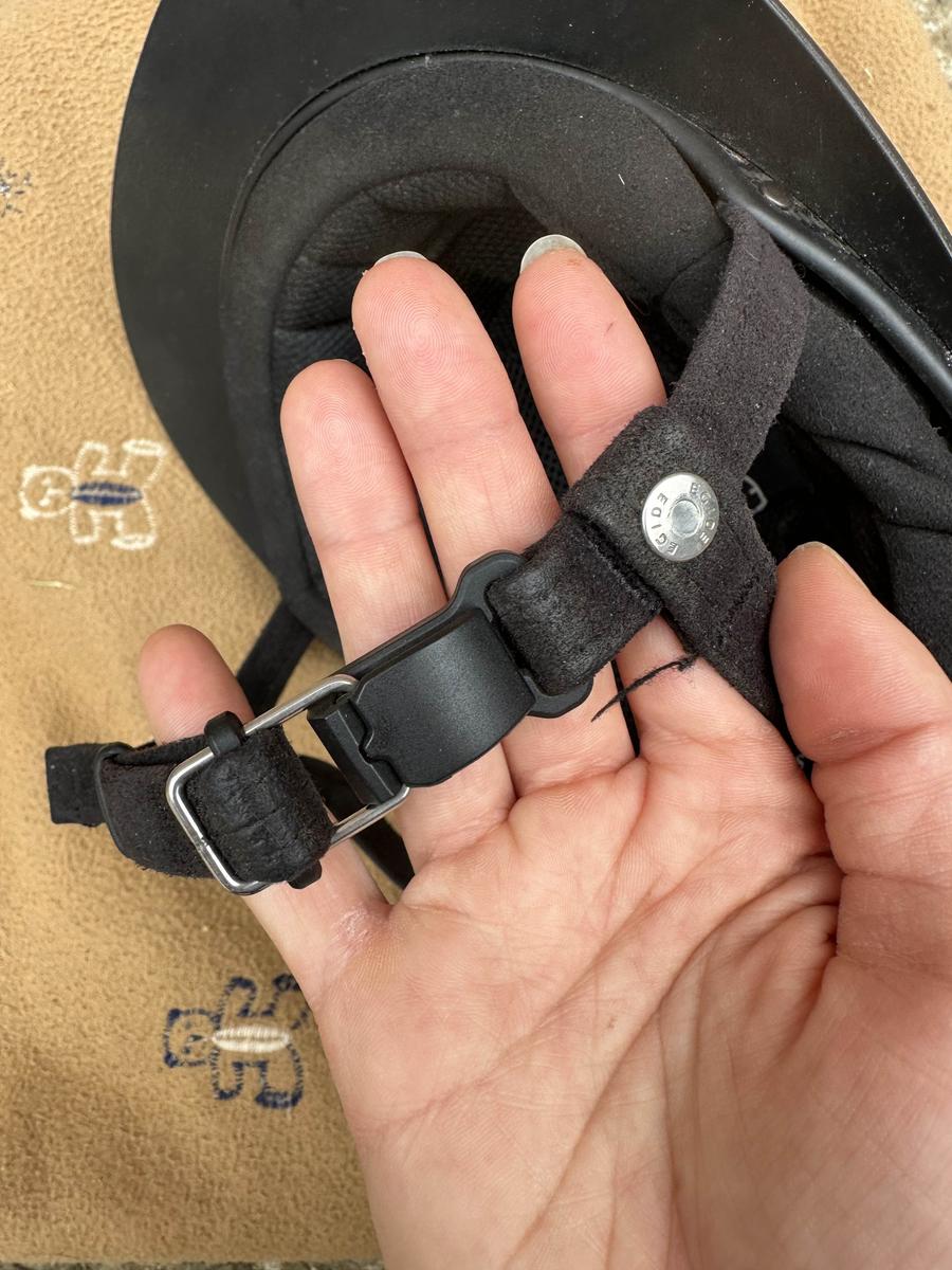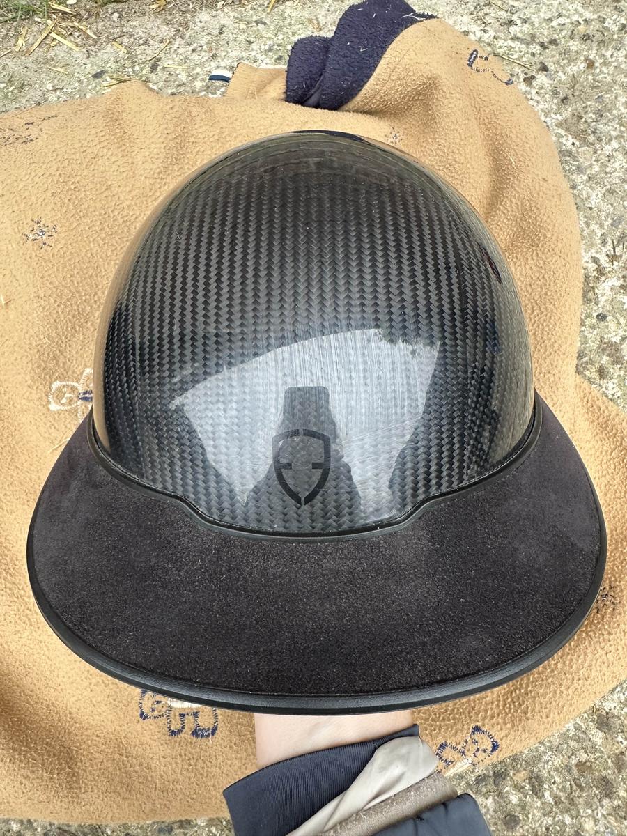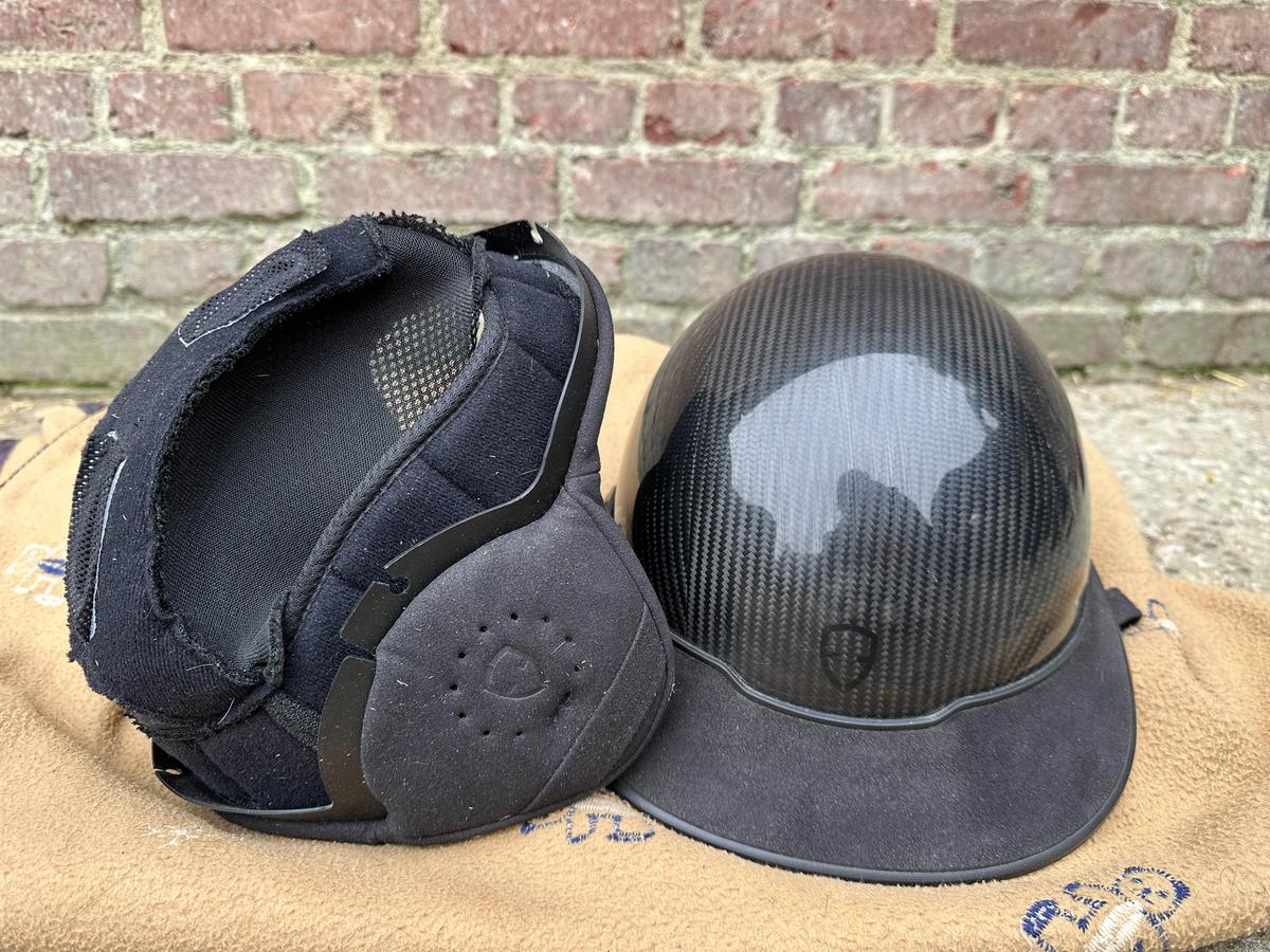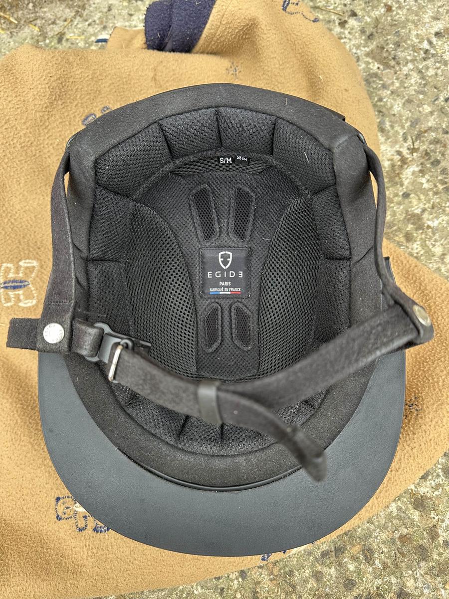 À vendre casque Égide en carbone noir grande visière taille 55cm ajustable, coque S/M. Elle n’a pas subit de choc.