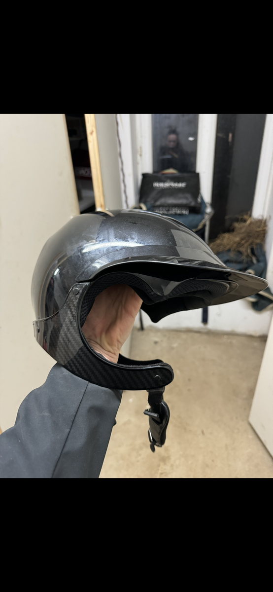 bombe naca modèle gravity xp avec jugulaire en carbone. vendue avec la visière et la housse ainsi que la boîte si vous le souhaitez.