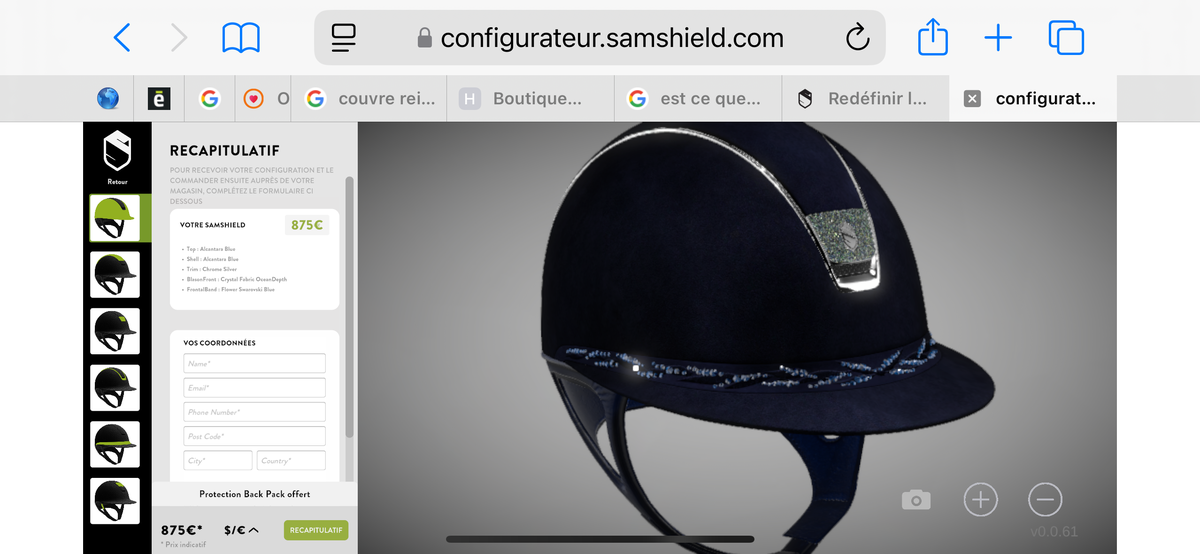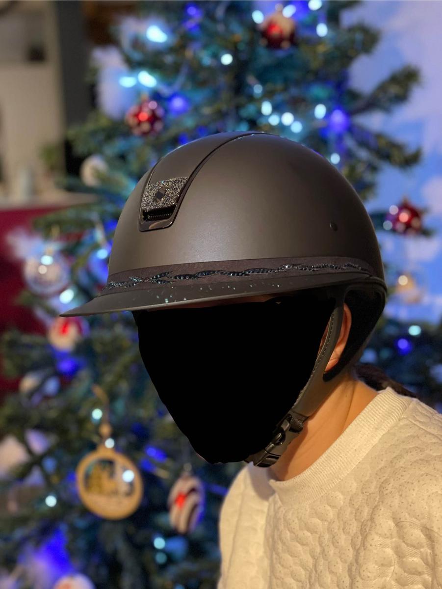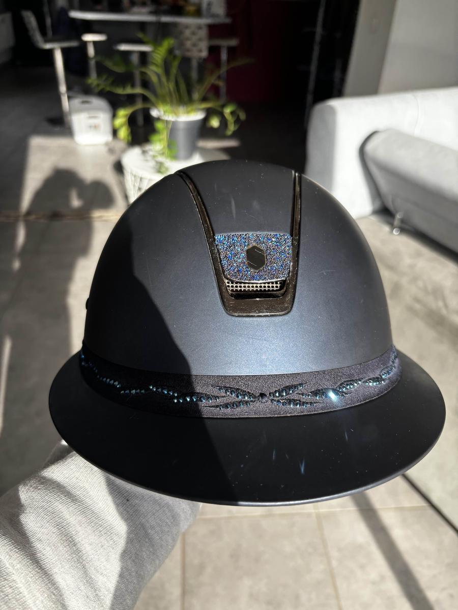 Bombe Miss Shield Alcantara Coque M (55-58) Édition limitée (95/100) Top : Alcantara Bluel * Shell : Alcantara Blue * Trim : Chrome Silver * BlasonFront : Crystal Fabric Ocean Depth • Frontal Band : Flower Swarovski Blue| Aucune chute avec Quelque rayures Vendue avec mousse 54 Prix neuf : 875 euros À vendre 610€ négociable dans la limite du raisonnable