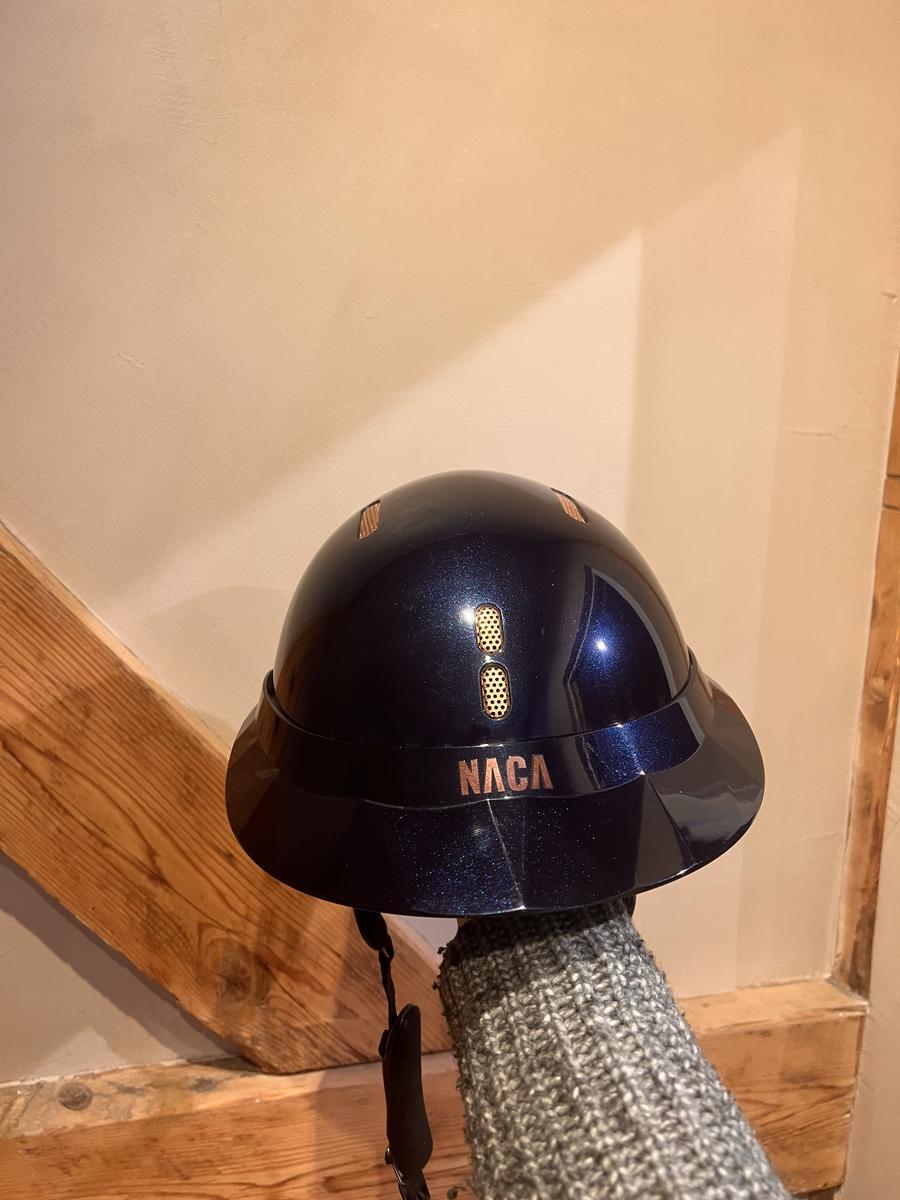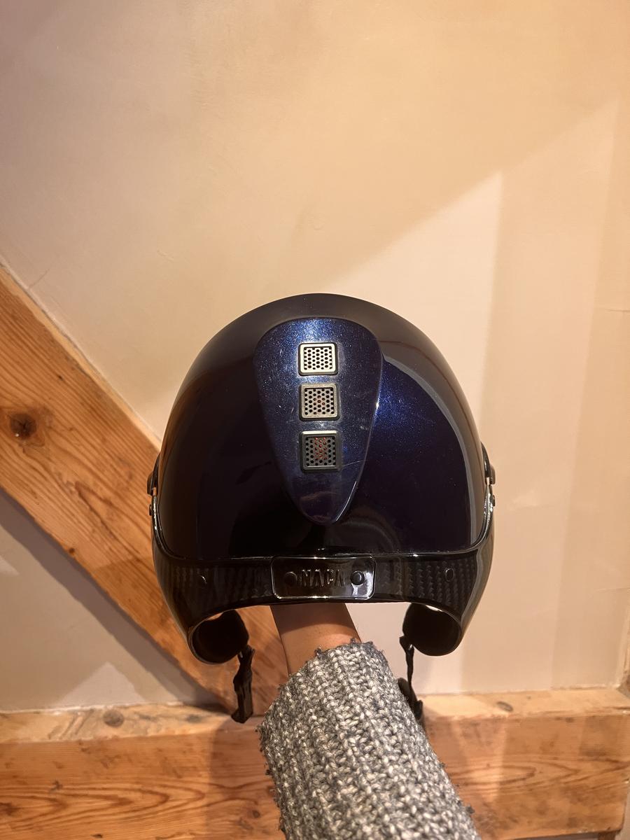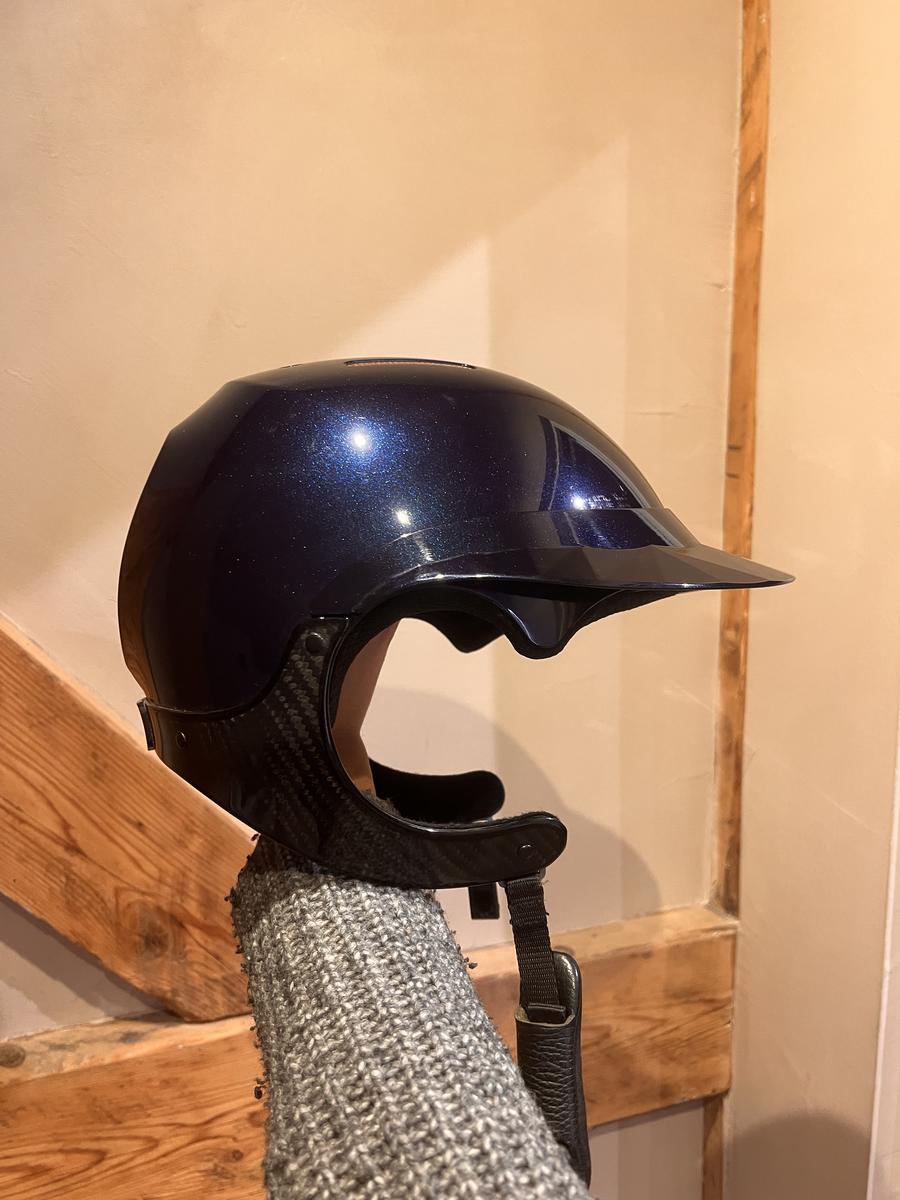 Bombe Naca 57cm bleu saphir visière large - jugulaire carbone noir