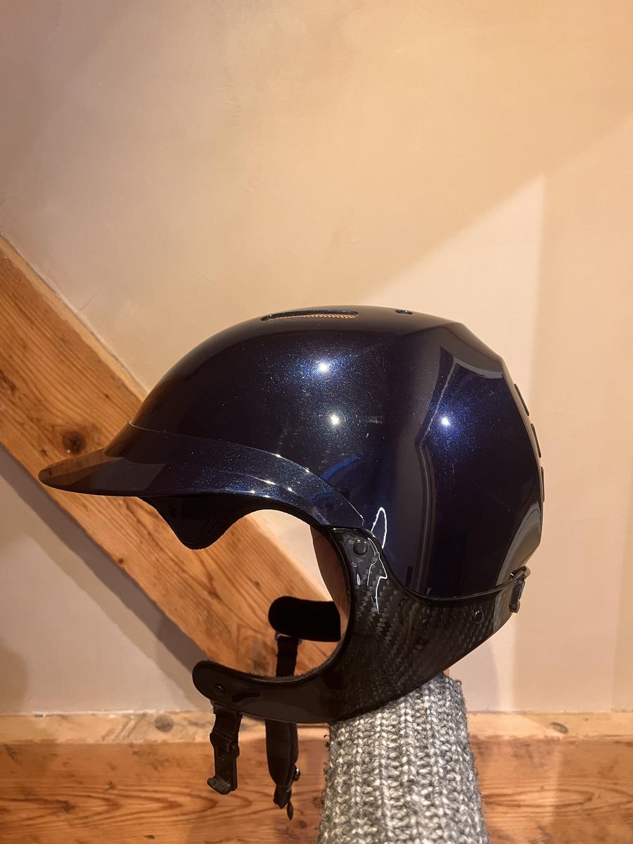 Bombe Naca 57cm bleu saphir visière large - jugulaire carbone noir