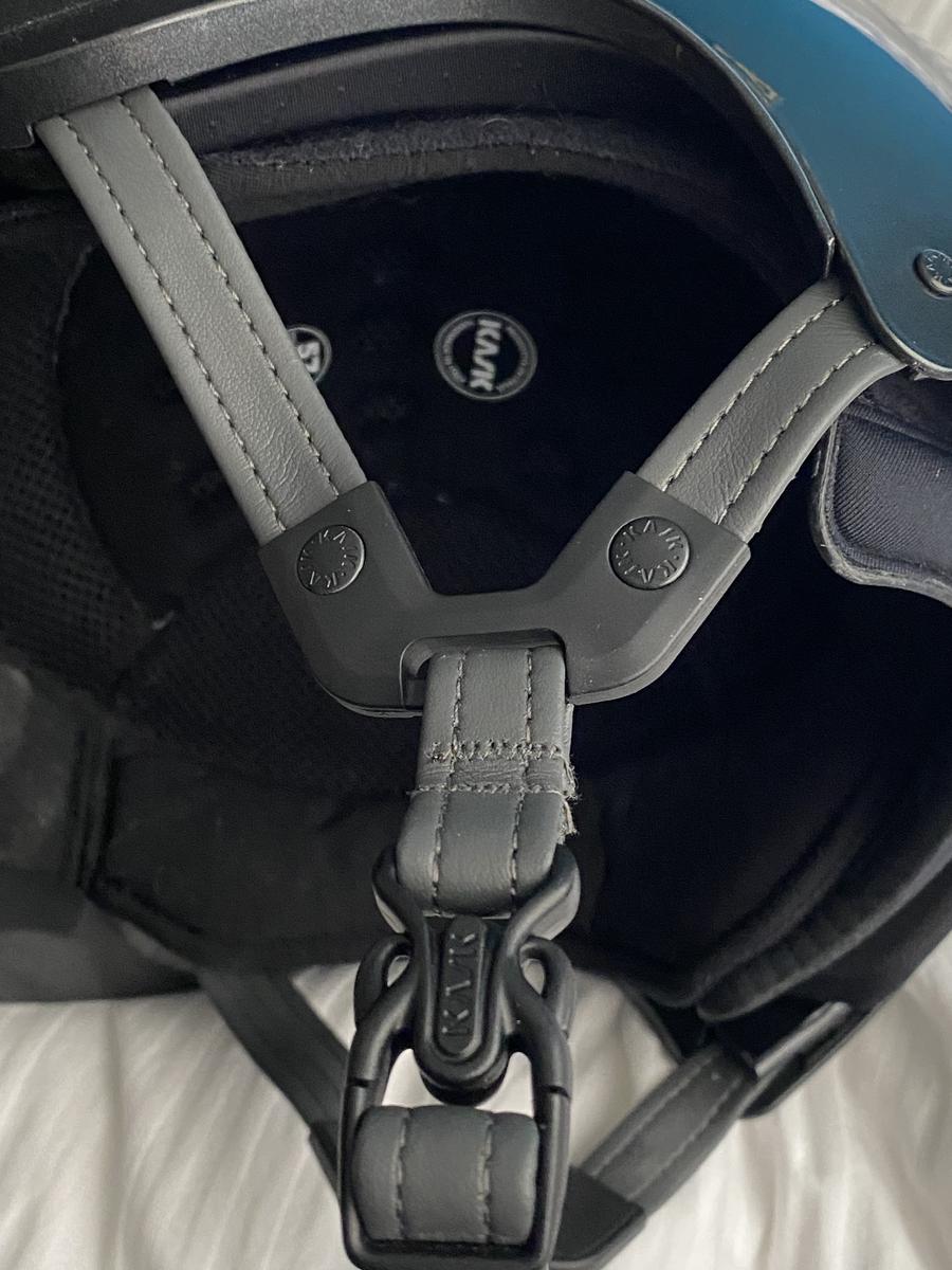 vendu avec une mousse t. 57, quelques marques mais lavée, toujours entretenue avec le spray fraicheur de la marque