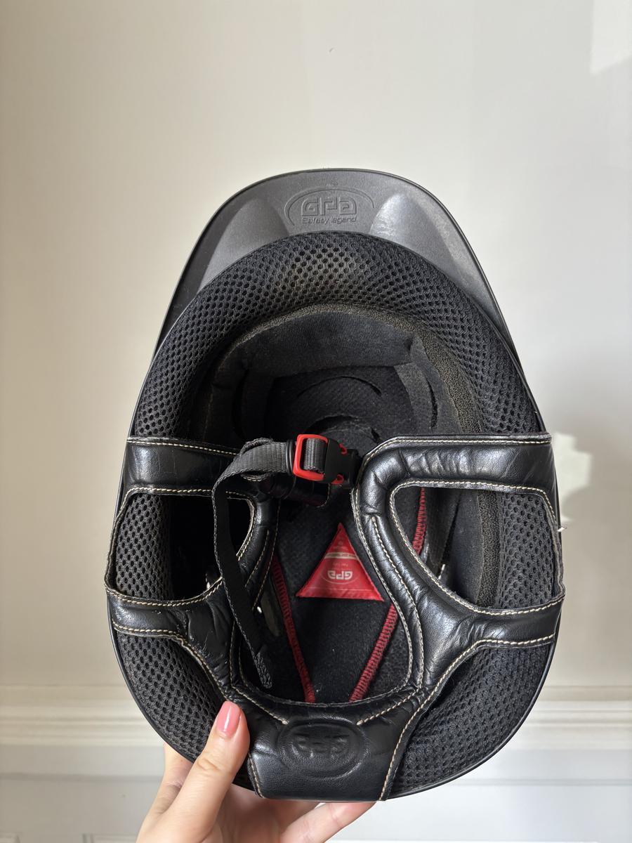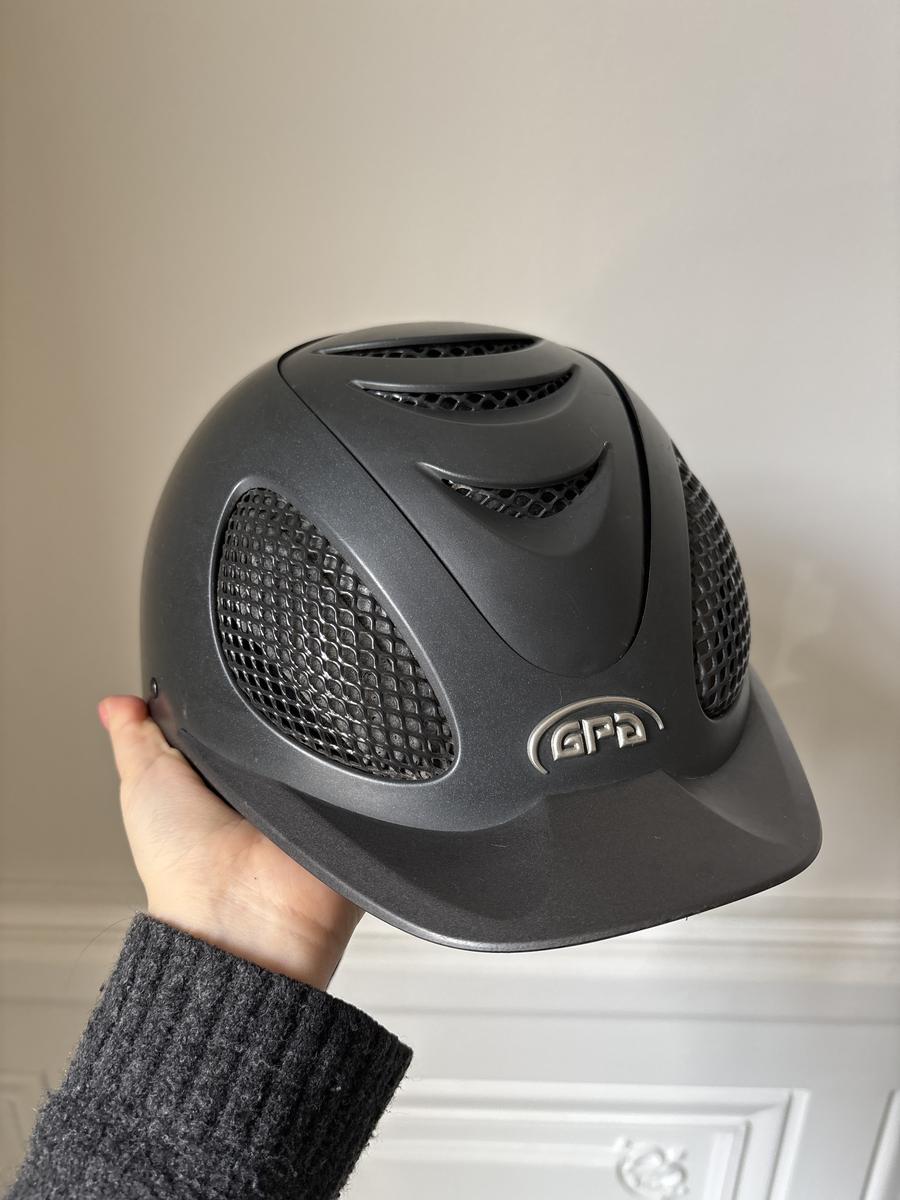 Taille 58, mousses amovibles. Manque une partie de la mousse comme montré sur la photo mais est utilisable.
