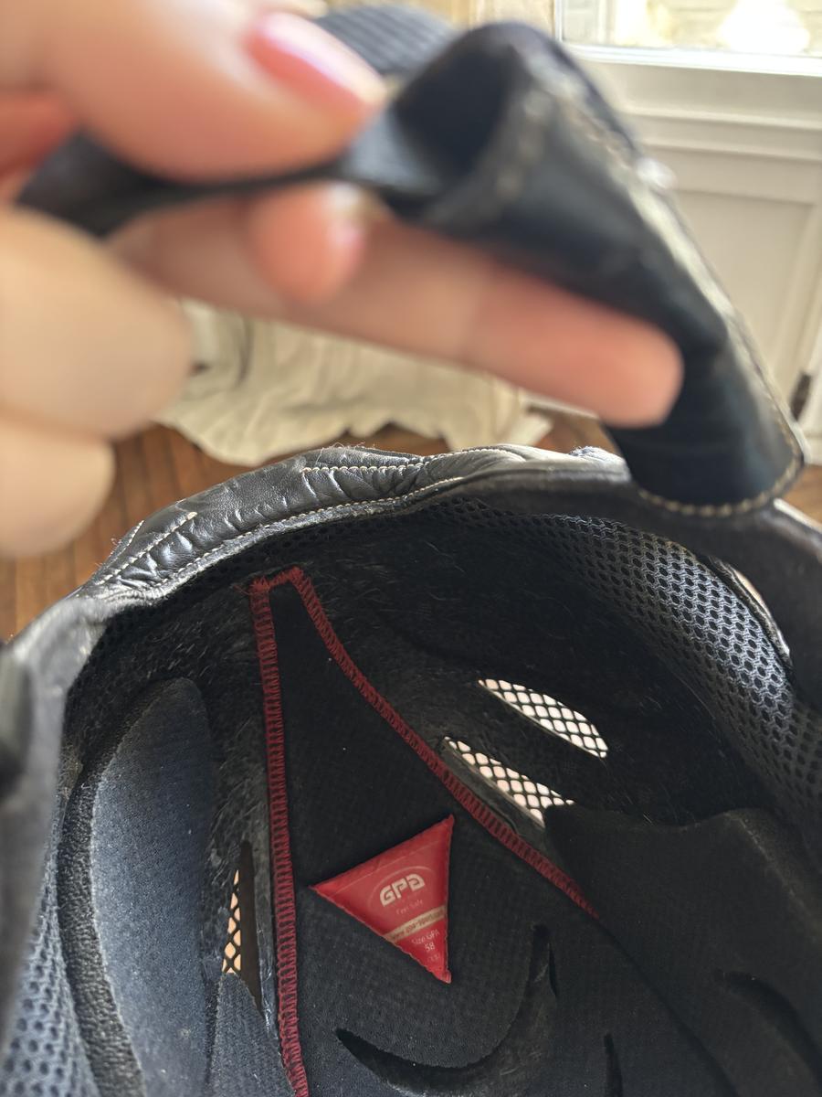 Taille 58, mousses amovibles. Manque une partie de la mousse comme montré sur la photo mais est utilisable.