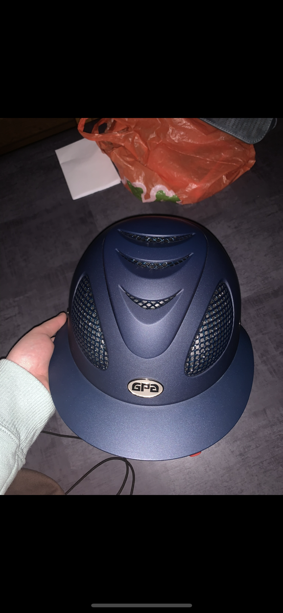 Bonjour, Je vends ma bombe GPA First Lady bleu marine taille 58/59 En très bon état, aucune chute sur la tête ! Quelques rayures dû aux branches en balades mais rien de voyant. Acheté 550€