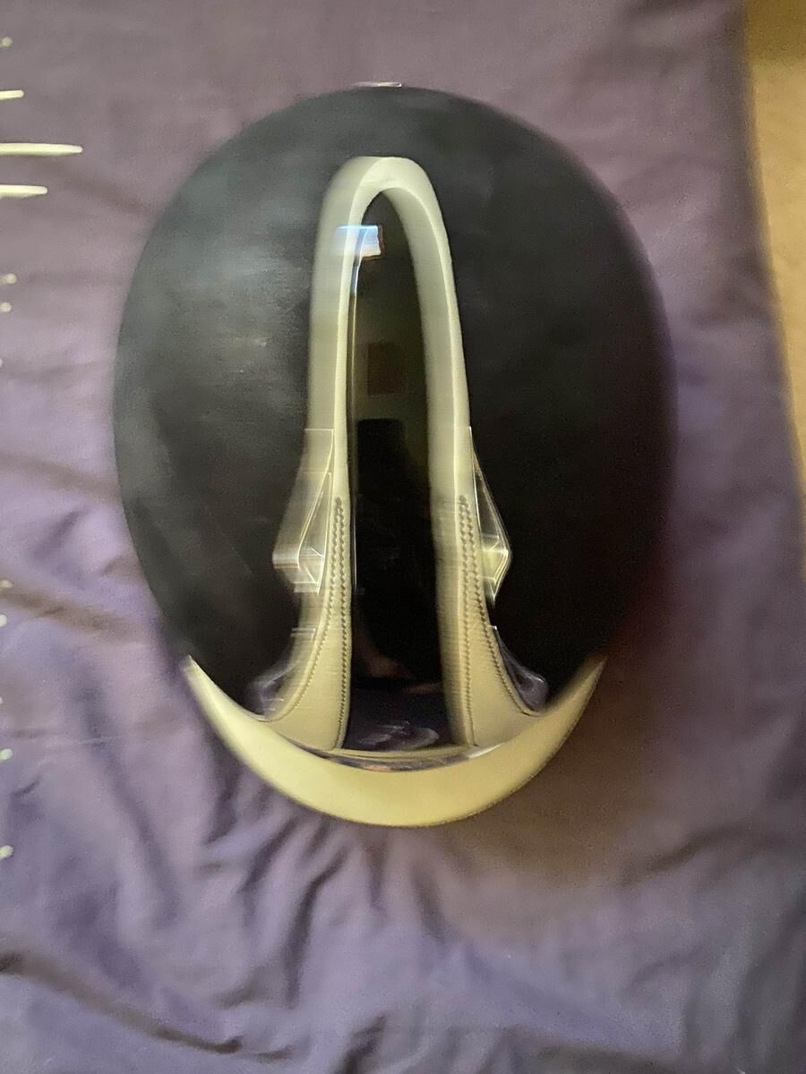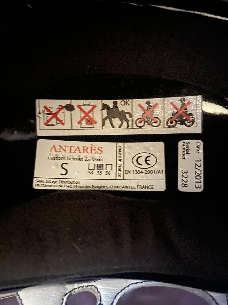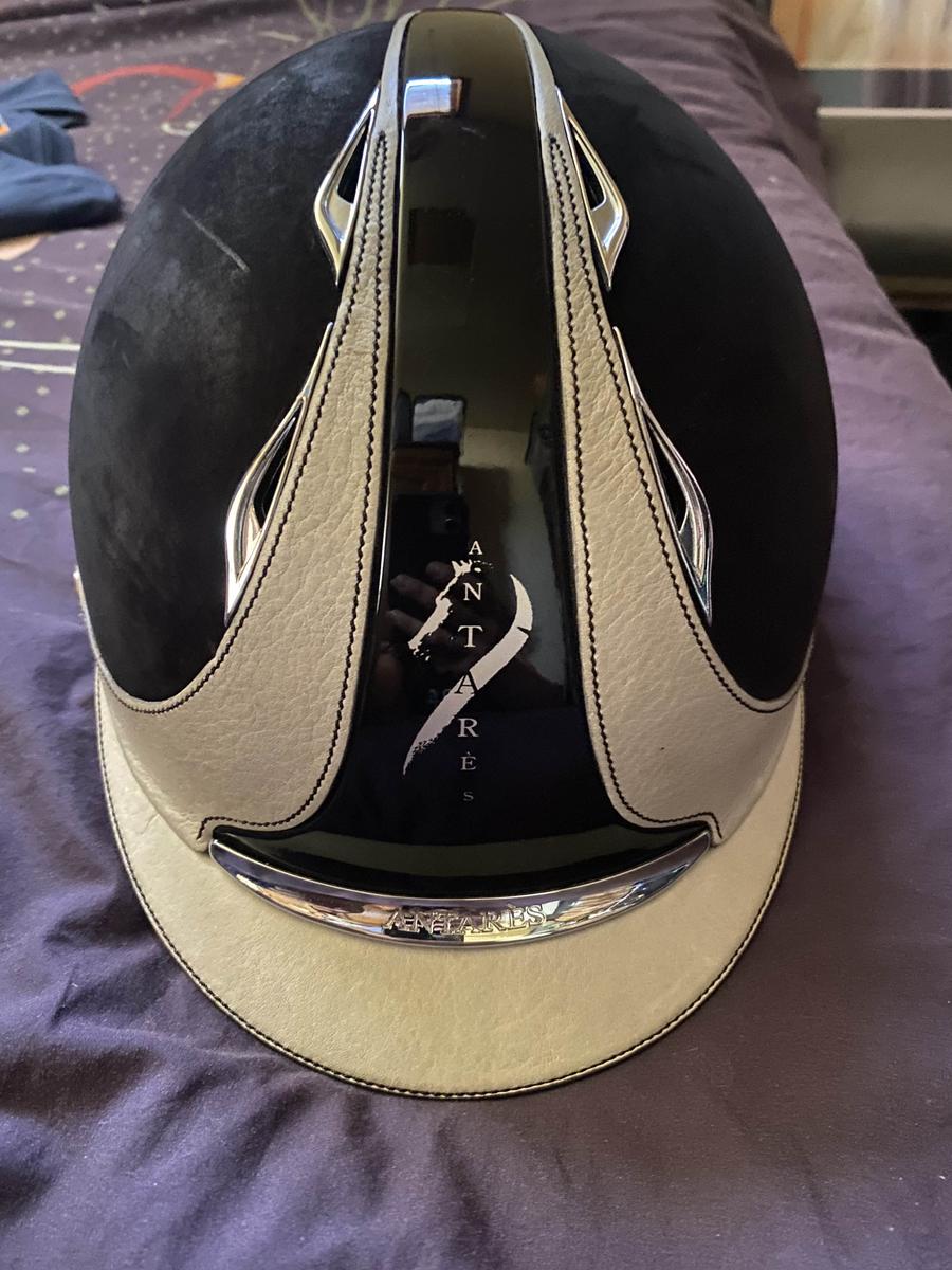 Casque ANTARES mis quelques fois en concours de dressage, aucun choc, toujours dans sa housse , avait été personnalisé, coque taille S
