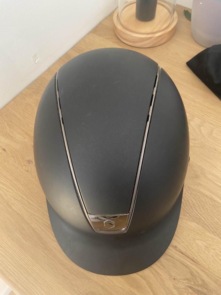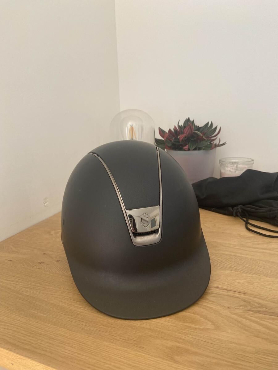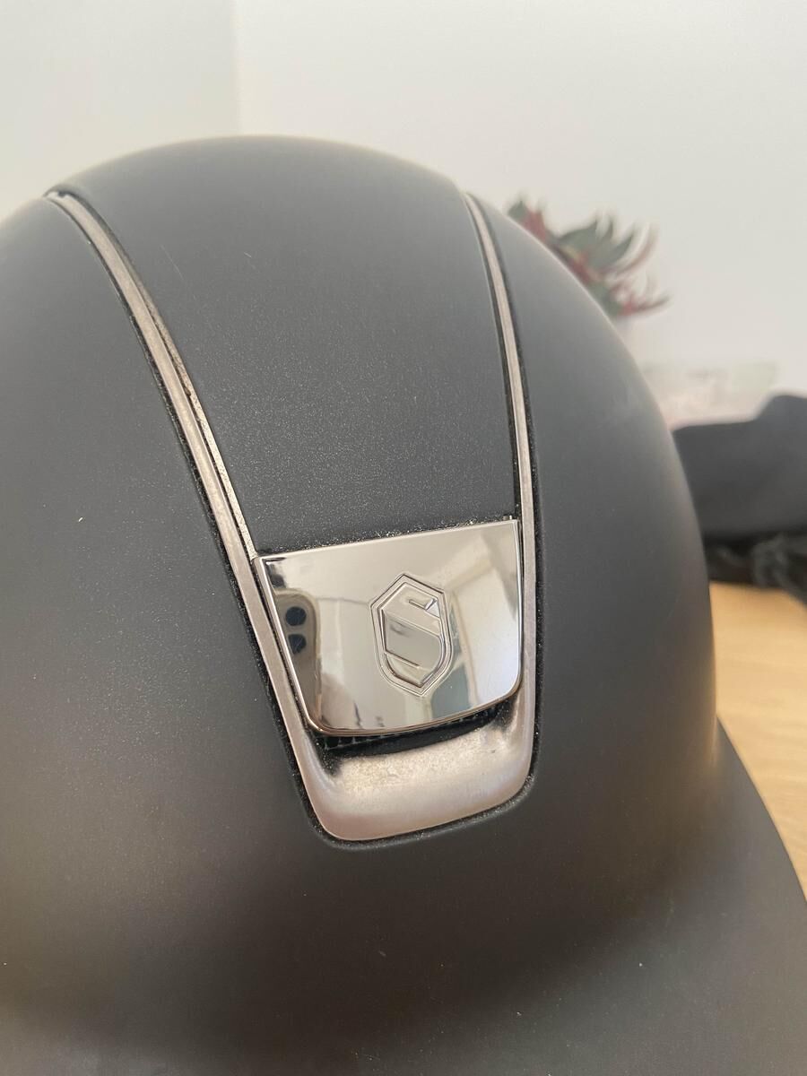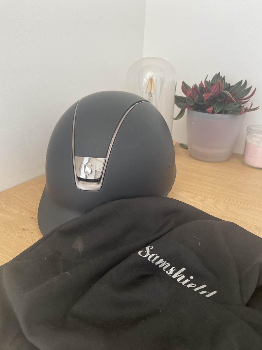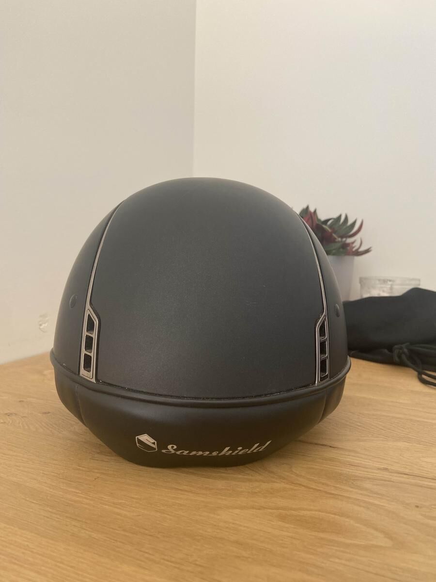 très belle bombe samshield ! porté une saison jamais tombée avec en parfait état taille de la coque S et mousse 54-56 couleur noir aucune égratignure ou trace d’usure