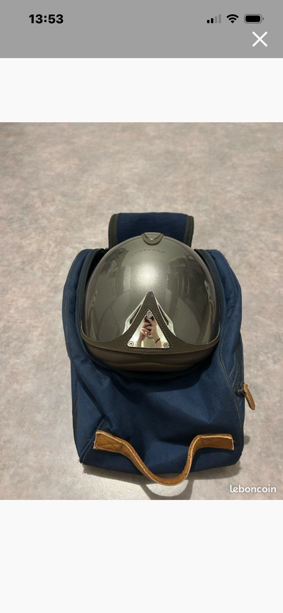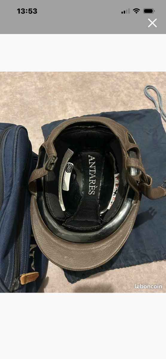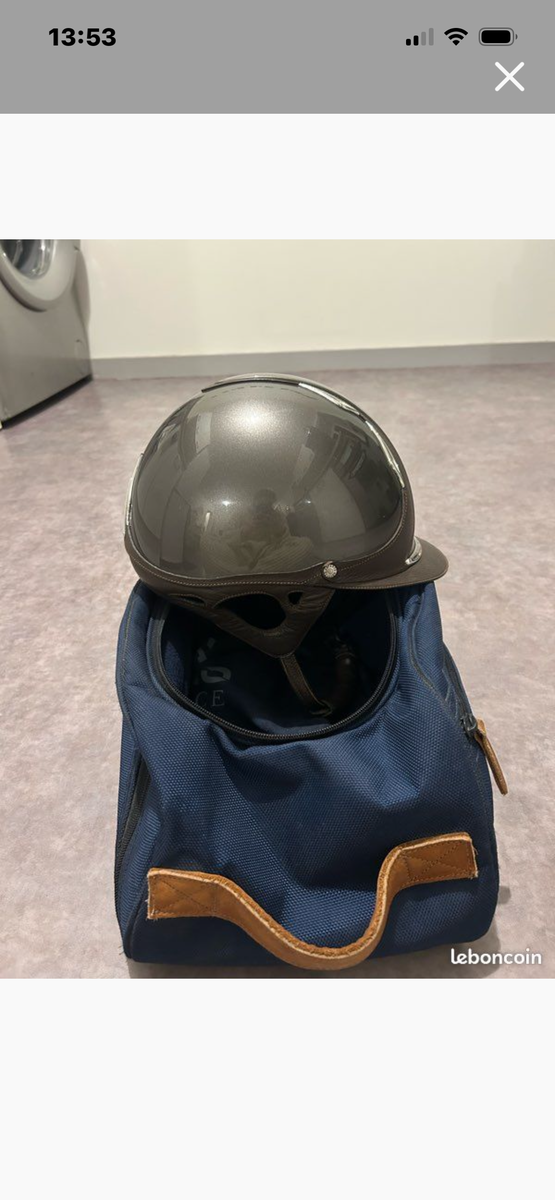 En très bon état, quelques légers accros au niveau de la barrette avant et le haut du casque mais invisible à cheval. (Parties du casques qui peuvent également être changées aucune chute niveau des couleurs)