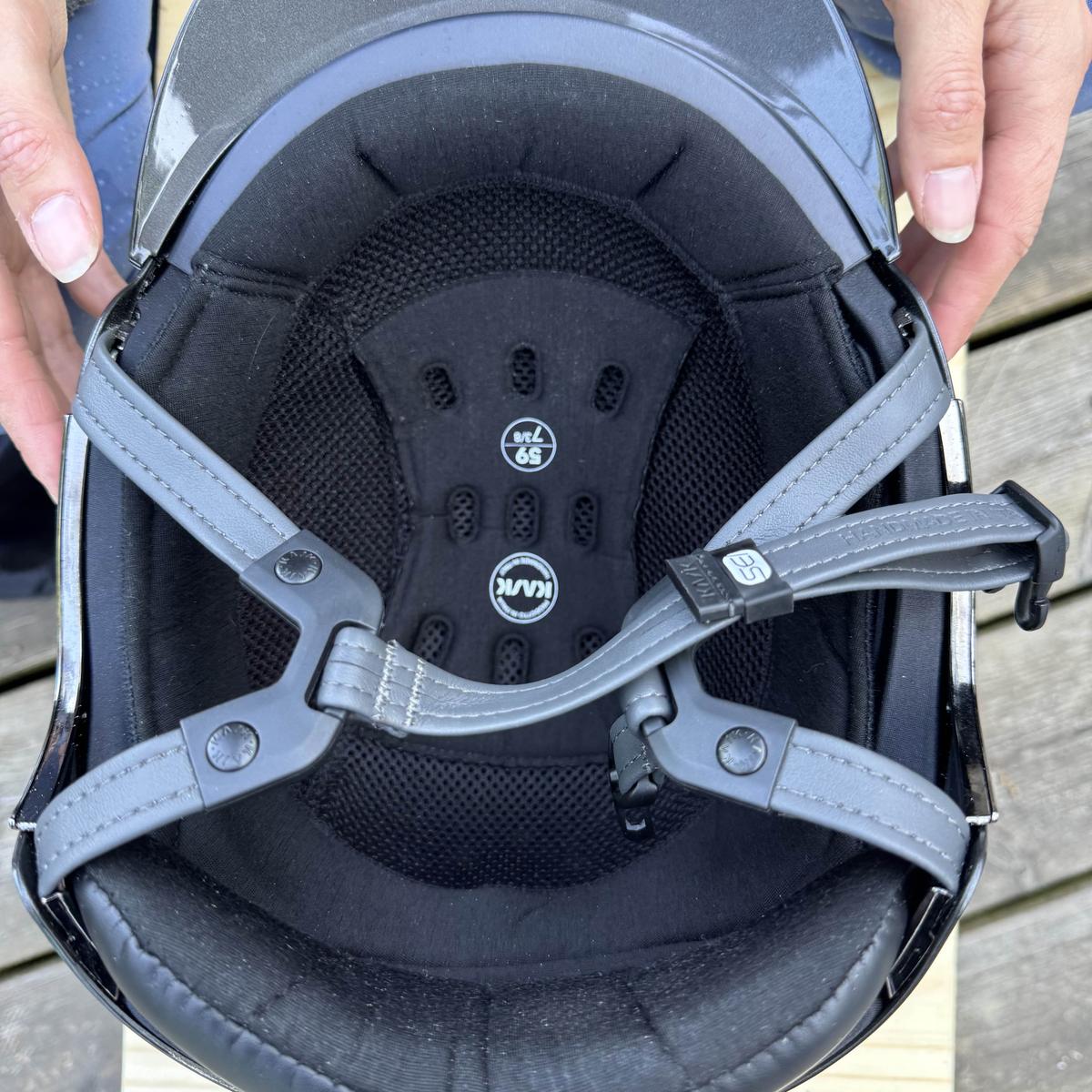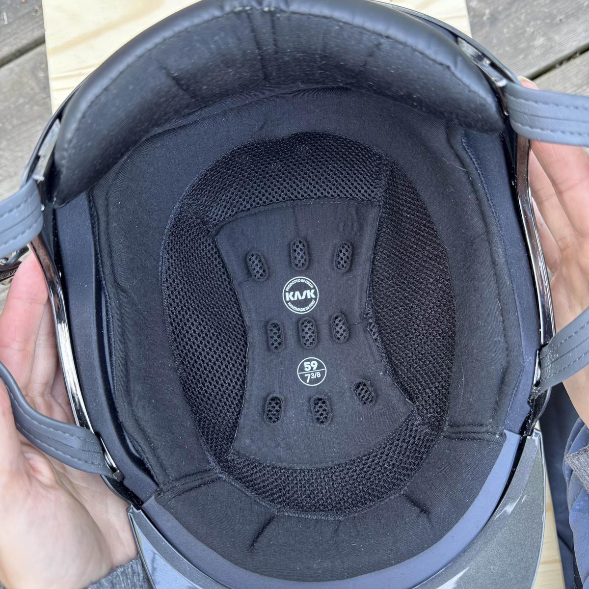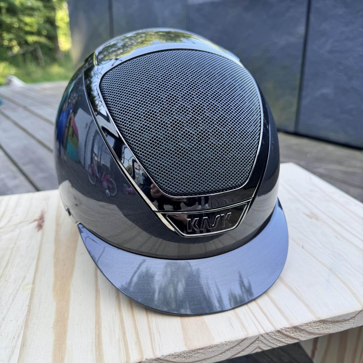 Neuve, jamais utilisée Raison de la vente : arrêt de l’équitation Visière standard, coque externe moulée en ABS, très résistante et légère Résistant aux rayures et lavable Mentonnière en cuir écologique douce est hypoallergénique Rembourrage interne confortable et respirant fabriqué à partir de laine Mérinos Deux grilles d’aération à structure alvéolaire intégrées au polystyrène Taille 59 Vendue avec sa housse et boîte d’origine + facture à la demande Plus de photos sur demande