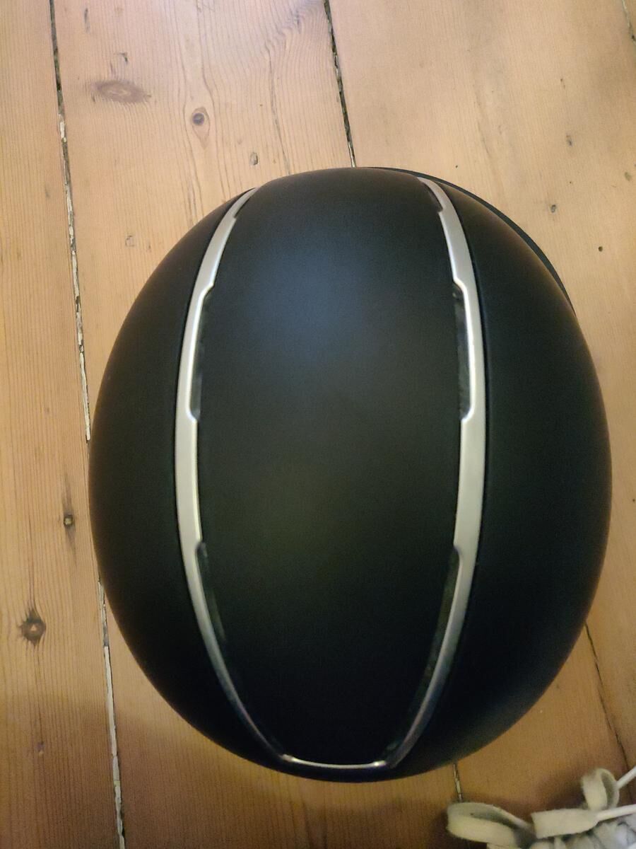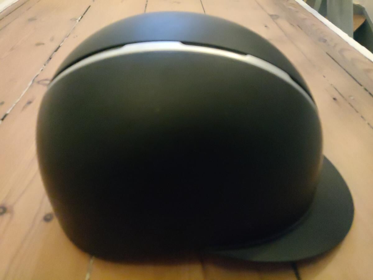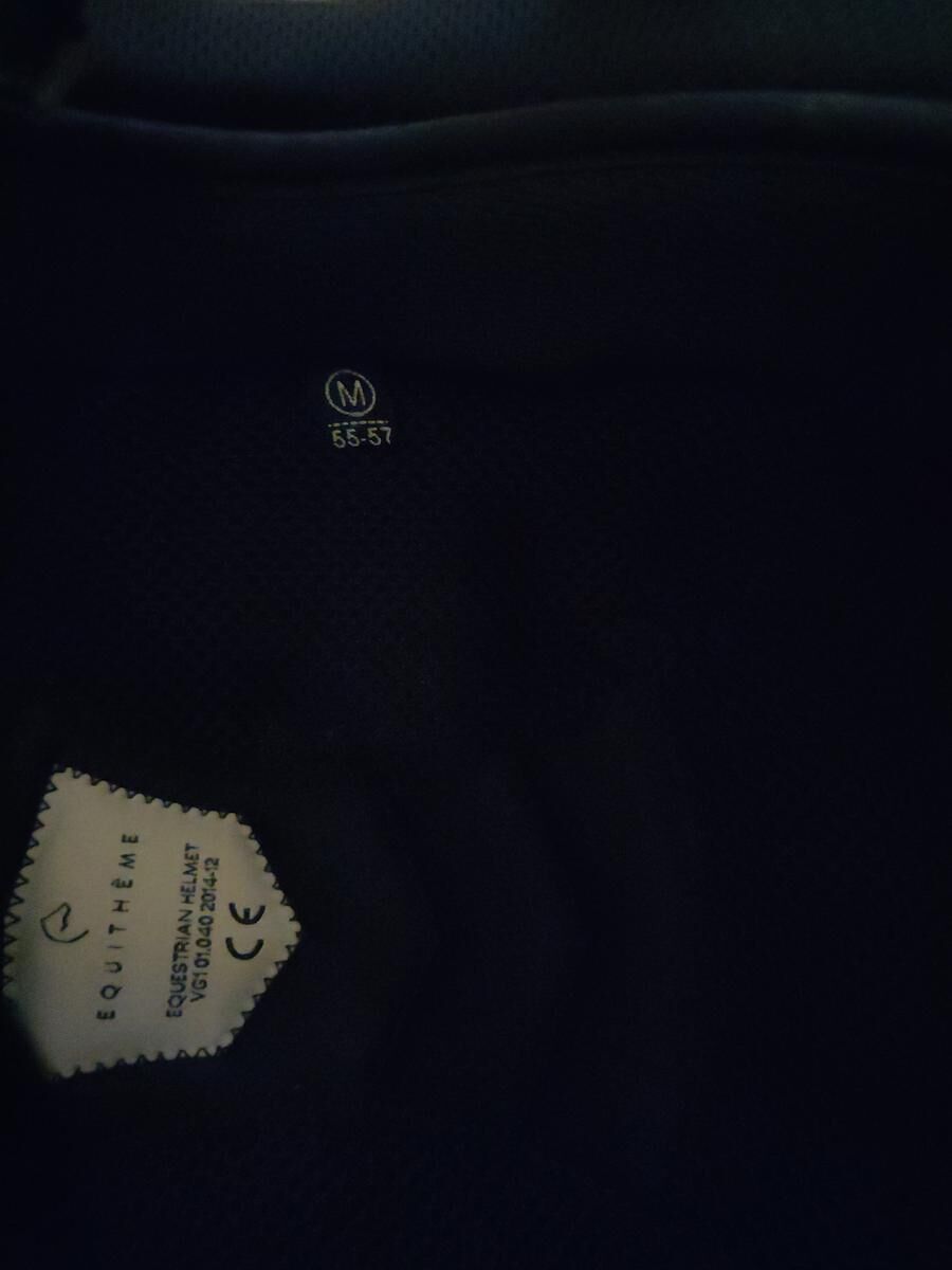Bombe Equitheme en très bon état, en taille M, donc pour un tour de tête entre 55cm et 57cm. Elle est vendue avec sa house de protection.