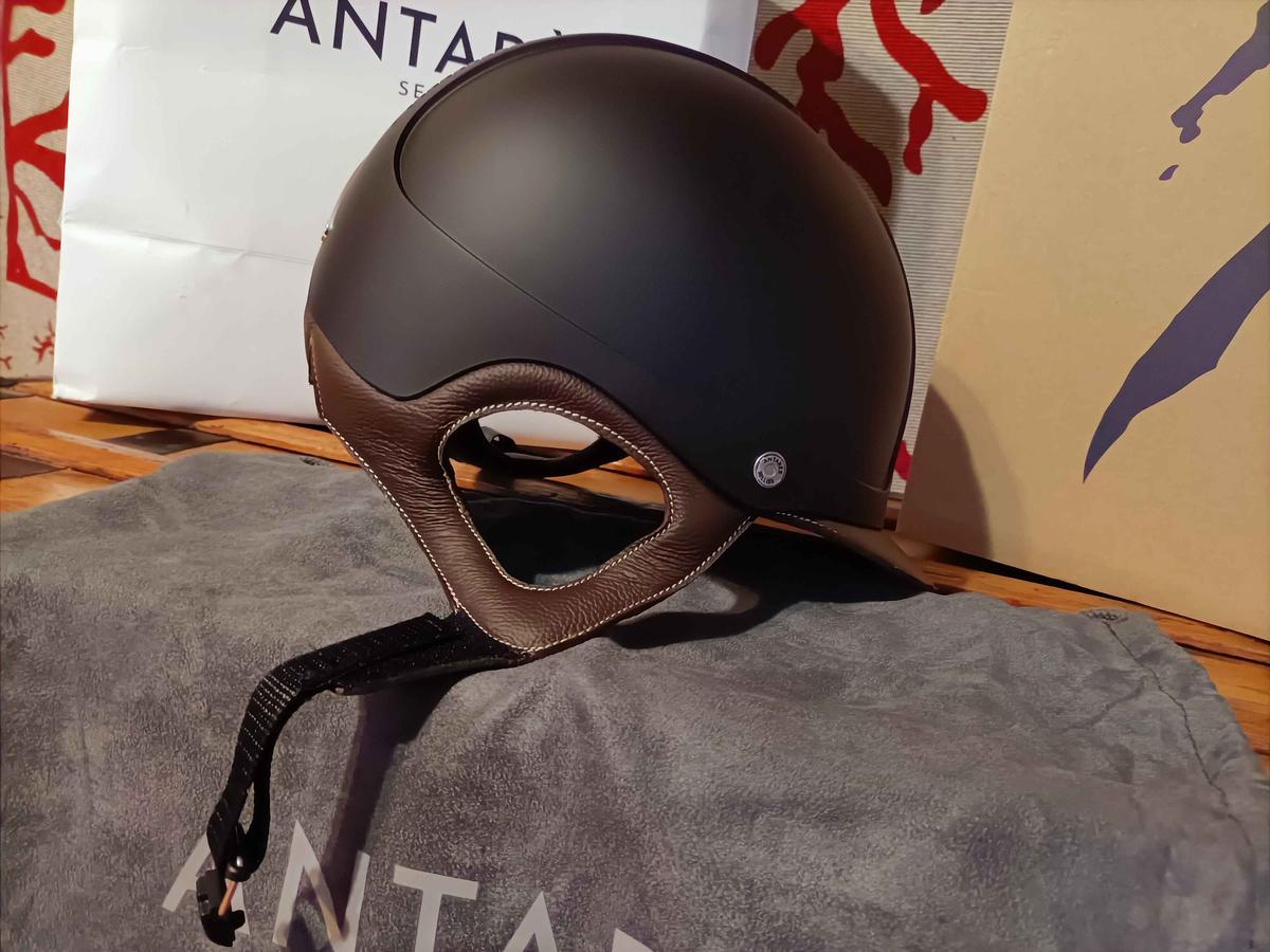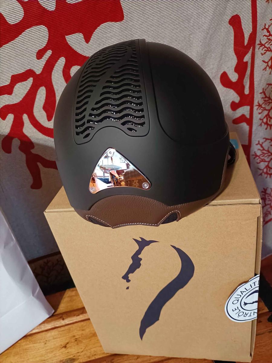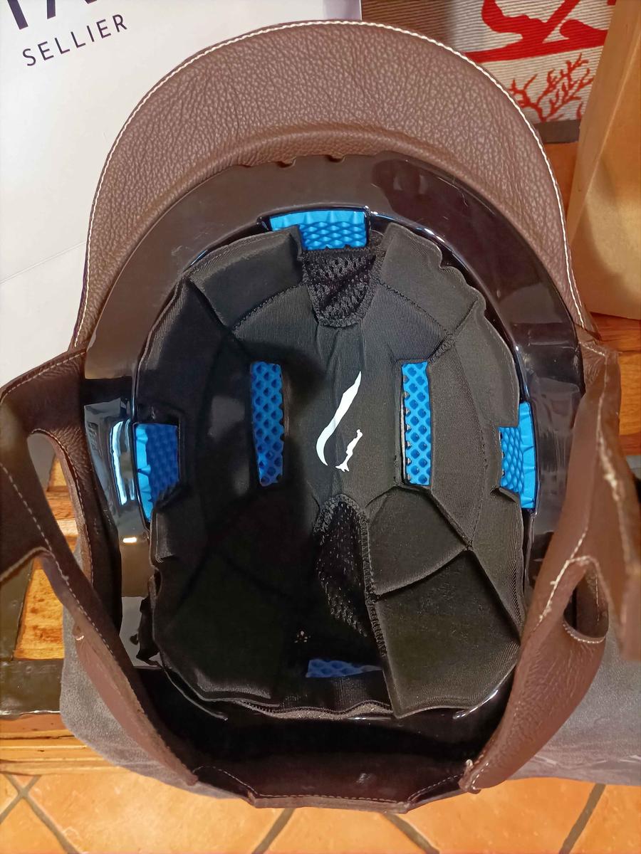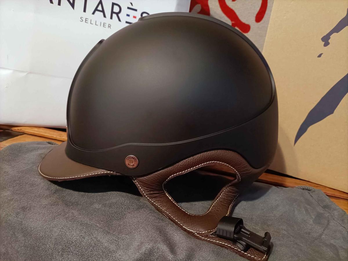 - Casque Antares Nouvelle Gamme Précision Galaxy Chrome - Casque noir, visière et harnais cuir marron, accessoires chromés - Vendu neuf 350 euros au lieu de 400 euros avec pochette grise Antarès, carton contrôle qualité avec cale intérieure - Taille adaptable avec achat de l'intérieur (Mousse) à adapter à votre taille (18 euros). Actuellement vendu avec intérieur taille 57 plus cale arrière - Système de fixation avec boucle aimantée "Fidlock", permettant d'attacher le casque à une main - Élastiques noirs présents à l'arrière du casque sur le harnais, permettant une décompression à l'arrière de la tête - La norme européenne impose le fléchissement de la visière lorsqu’une charge est appliquée sur celle-ci. Cela évite qu’elle ne se casse et blesse le cavalier. La visière des casques Antarès est donc volontairement souple. En cas de déformation, elle peut être manipulée manuellement afin de lui redonner sa forme originale. - Plus de détails encore sur ce casque Antarès sur demande ou sur site
