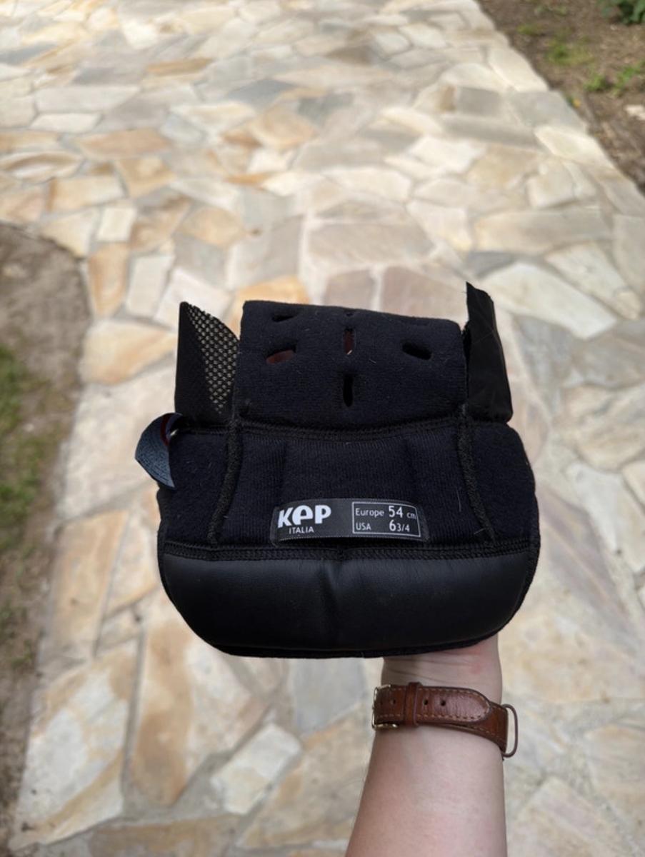 Très jolie bombe KEP noir mat grande visière en parfait état avec rembourrage 52 mais j’ai aussi une 54. Vend avec housse correspondante.
