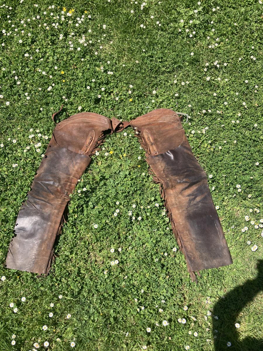 Chaps western marron foncé (taille M/L) véritable CUIR ( flanc de vache )