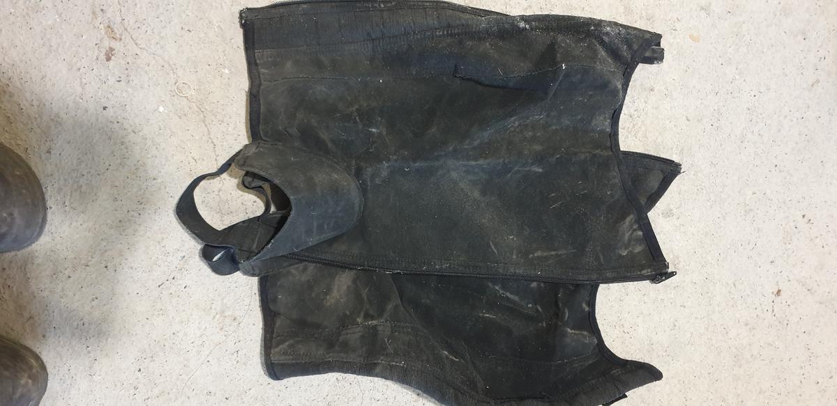 Chaps en synthétique très peu porter car trop grande. La matière prend la énormément la poussière.