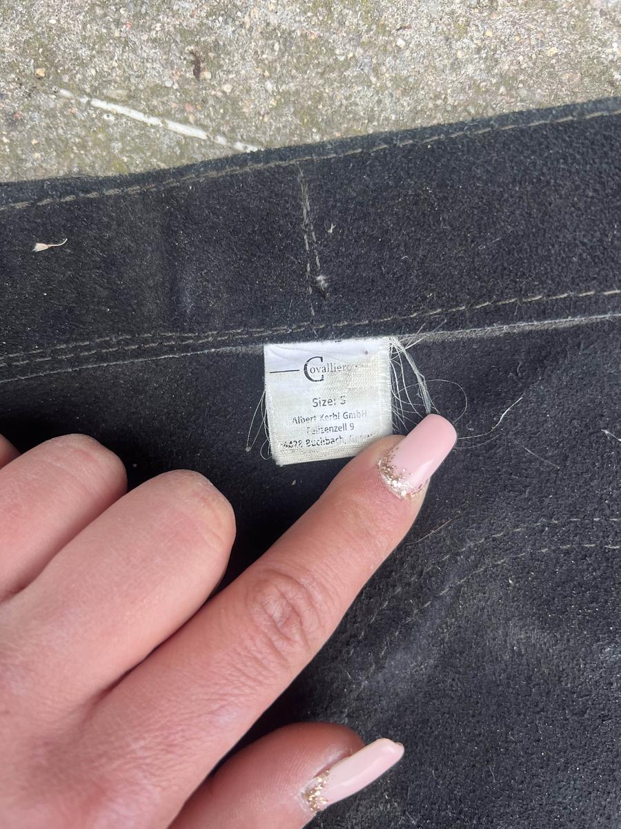chaps en cuir noir Covallerio en taille S avec fermeture à scratch.