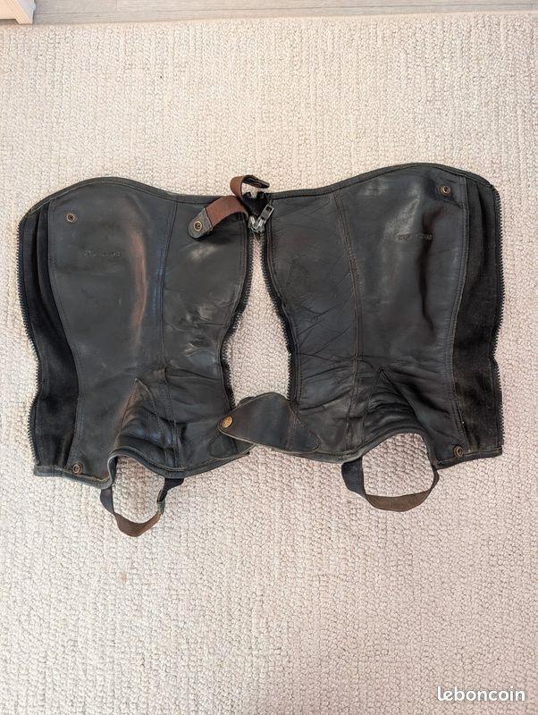 Mini-chaps en galbées cuir de vachette souple et huilé, de marque Eric Thomas, taille XS (convient pour quelqu'un d'environ 1m60 / 50 kg).