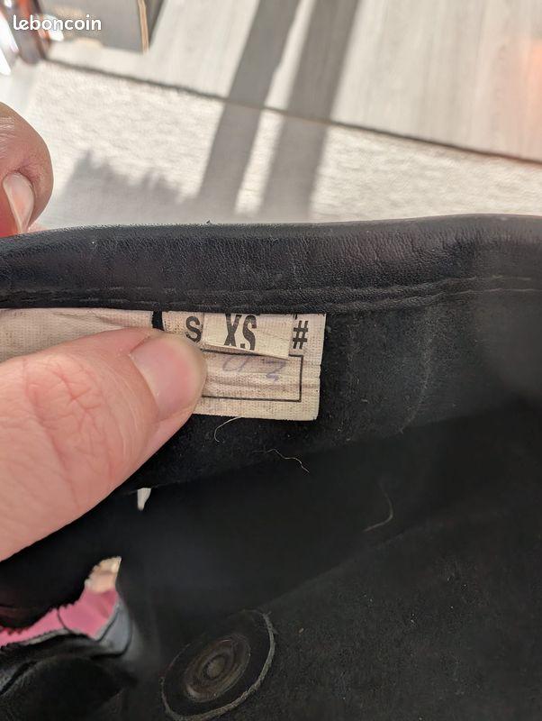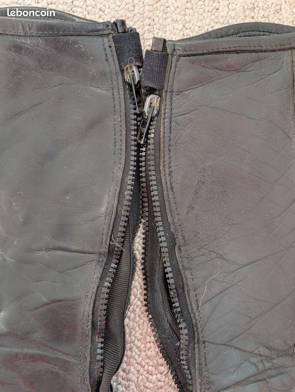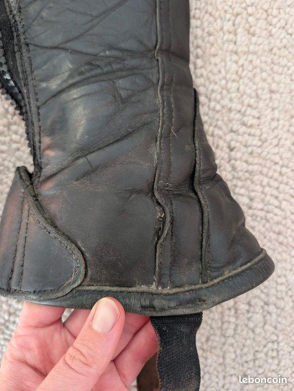 - Quelques défauts au niveau des surpiqûres sur la partie intérieure de la chaps, ne gênant en rien son utilisatio, ainsi que sur le rabat en cuir inférieur (cf photos)