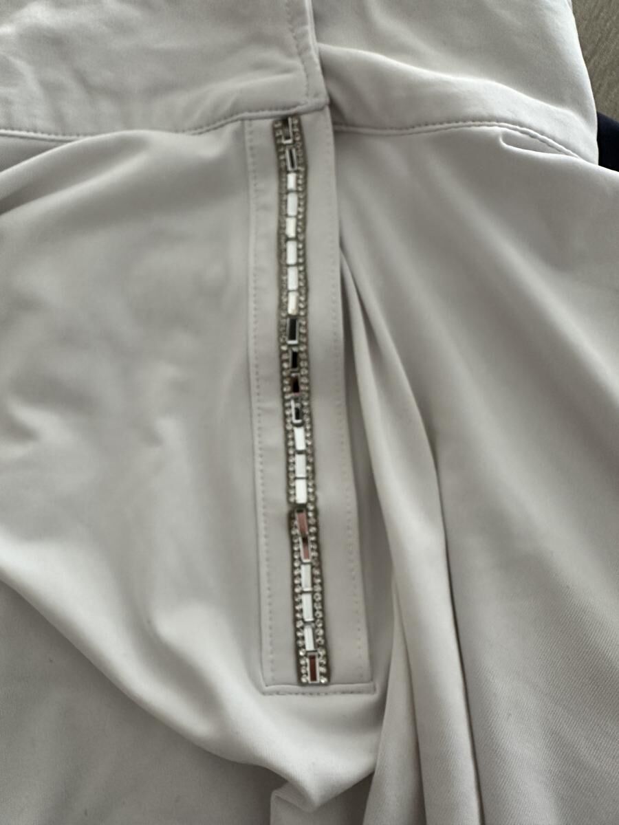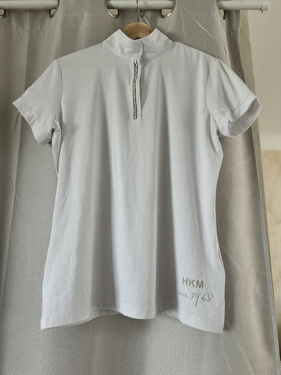 Polo de concours blanc HKM porté une 1/2 saison de concours. Boutonnière avec strass (toute présente).