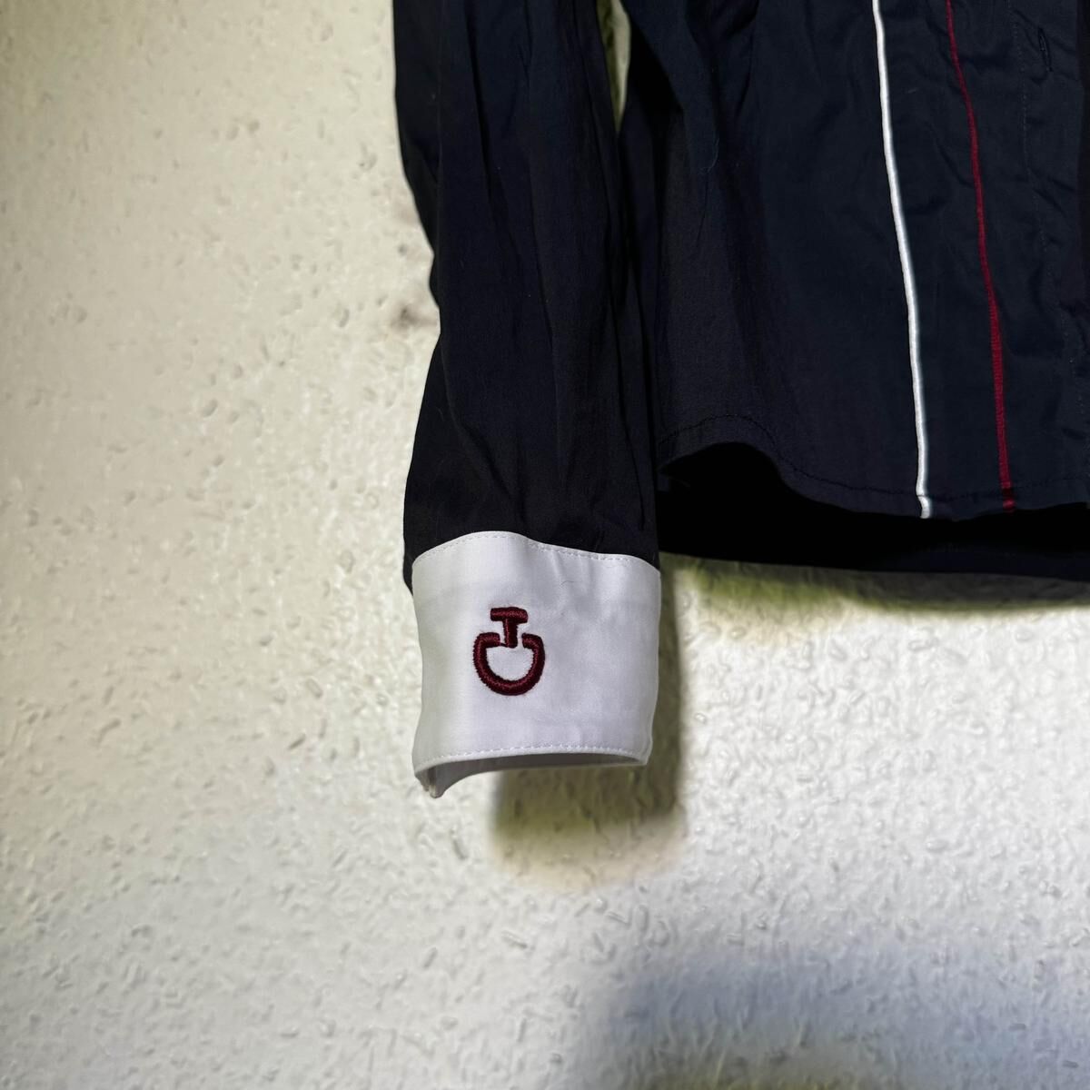 Bonjour, Je vends une chemise de concours Cavalleria Toescana 🌀 couleur bleu marine avec liserés blanc et rouge 🛍️ très bon état 📏 taille M Remise en mains propre possible (33)