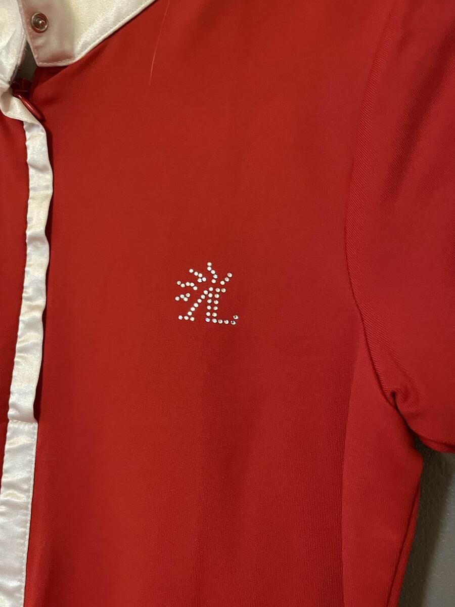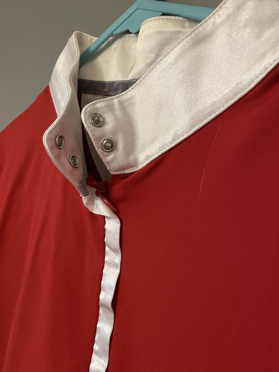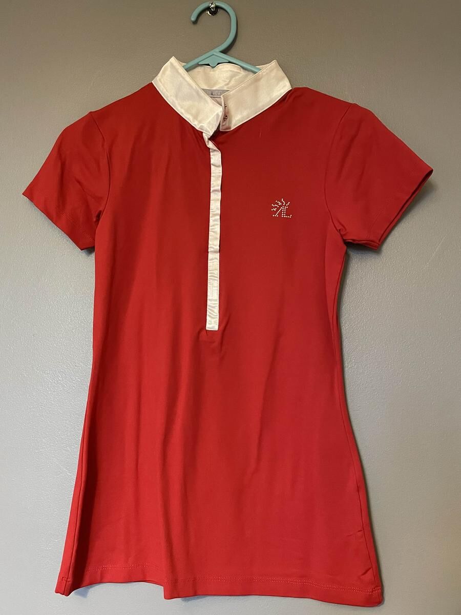 Polo de concours AL rouge. Très peu porté, très bon état. Taille correctement