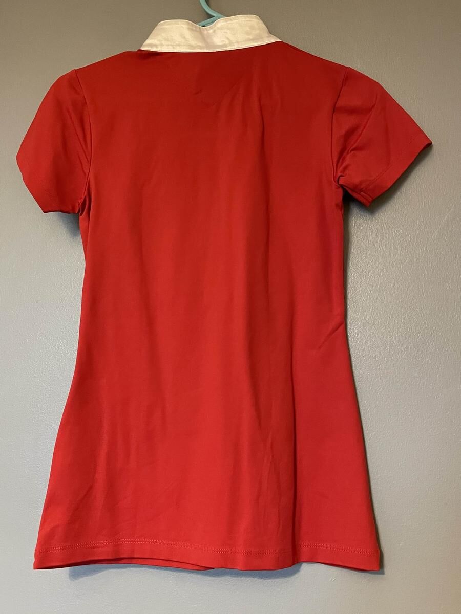 Polo de concours AL rouge. Très peu porté, très bon état. Taille correctement