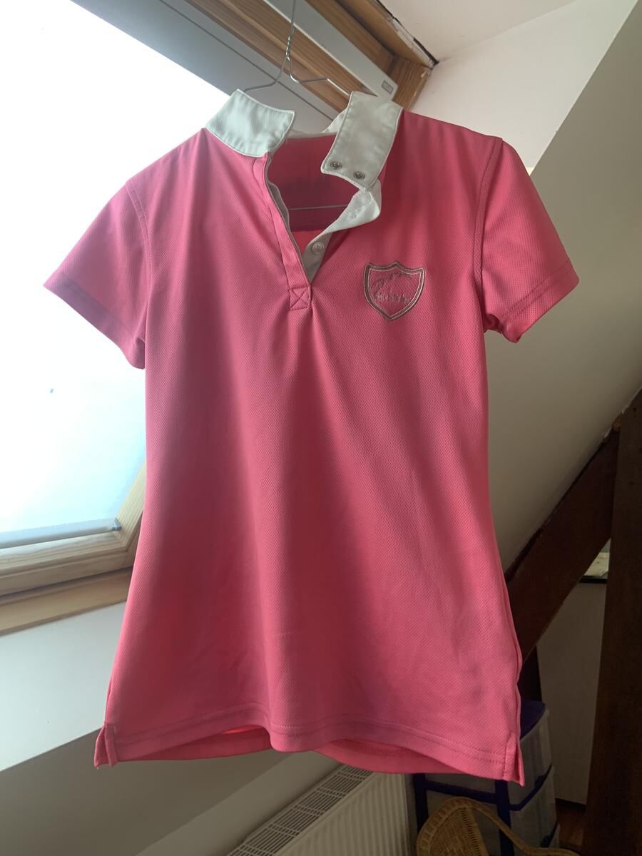 polo de concours rose avec col blanc pour les concours. Avec ce polo obligé vous allez vous faire remarquer en concours!! Il est beau et en plus de ça d’une matière très respirante💗