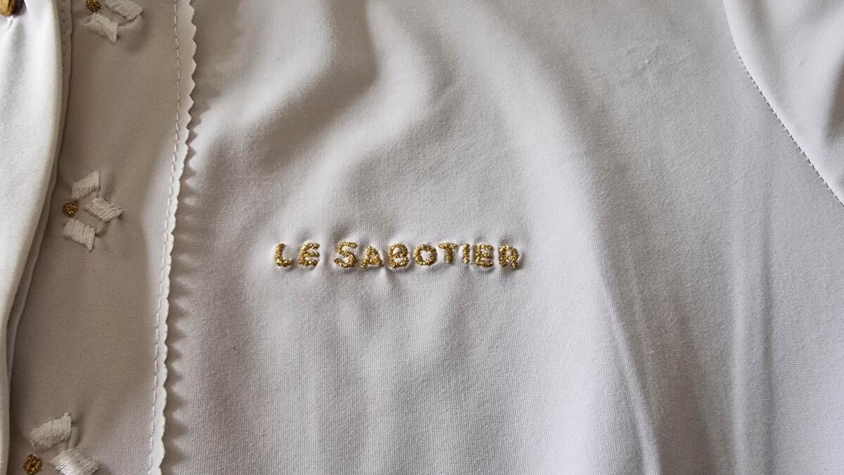 Broderie Le Sabotier sur la poitrine côté gauche.