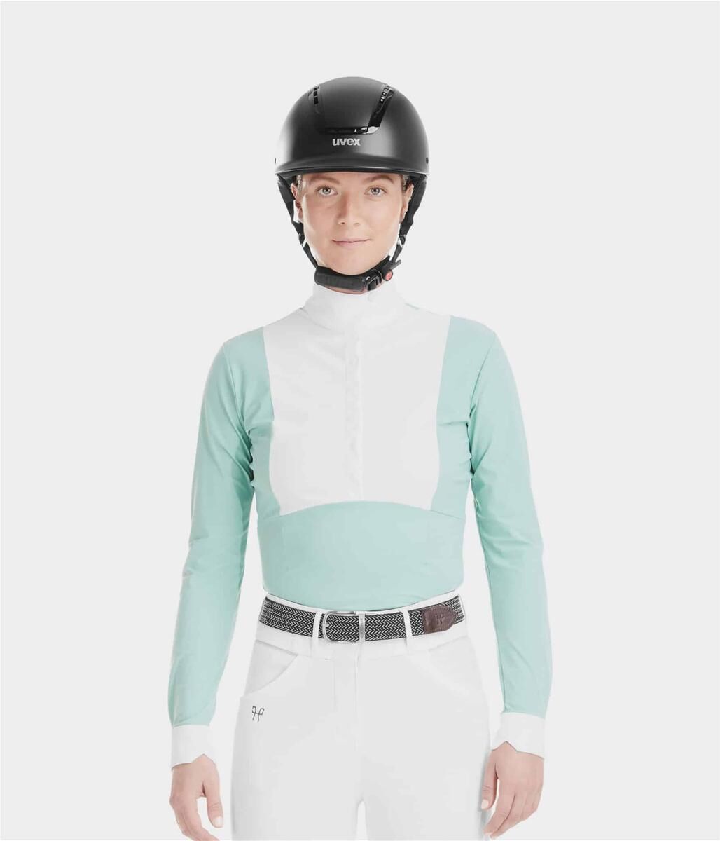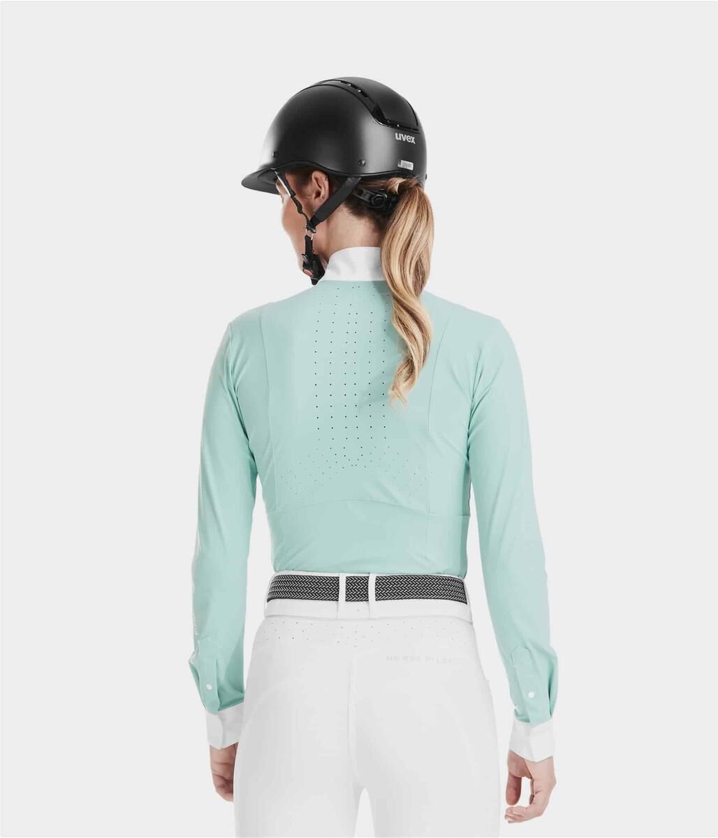 Sa matière bi-stretch, légère et respirante, et sa forme ergonomique permettent une grande liberté de mouvements. Avec son col réhaussé, la chemise Monica est aussi adapté pour les disciplines hunter equitation.