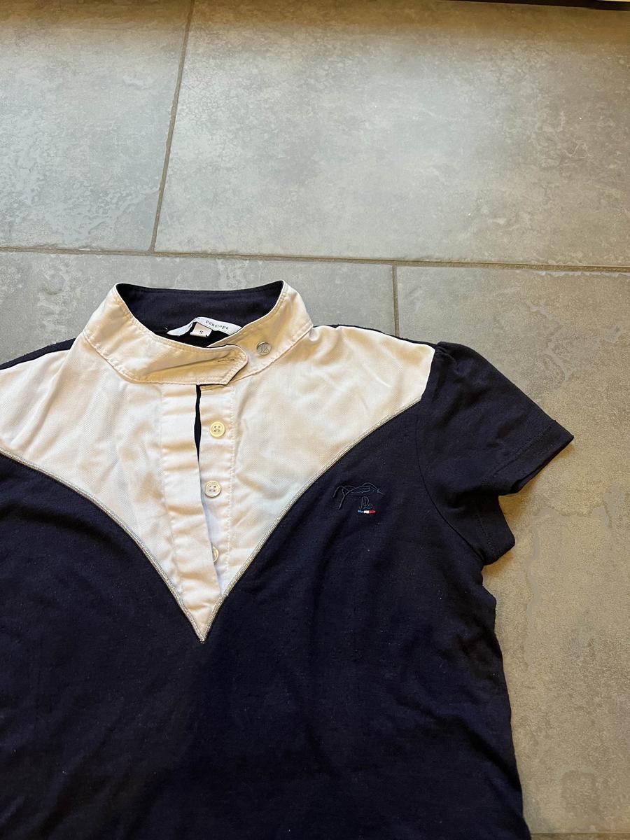 polo de concours manches courtes bleu marine effets pailletée et blanc