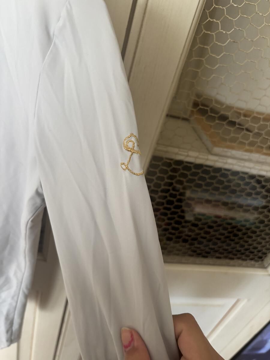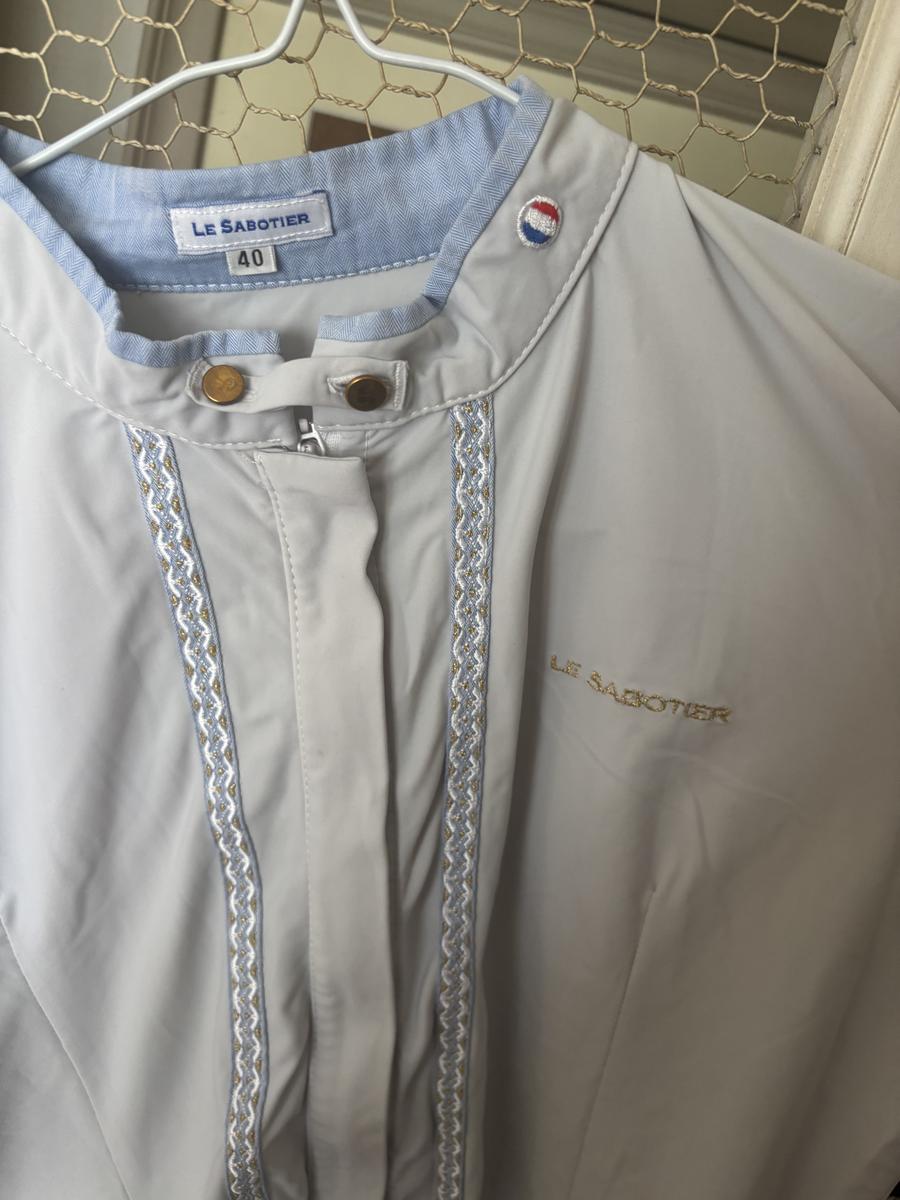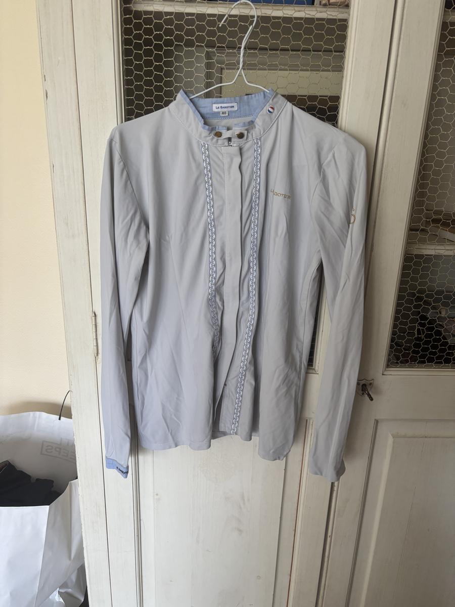 très bon état, sa couleur a perdu un peu de blancheur. Taille 40 mais je fais un 36-38 et il m’allait très bien.