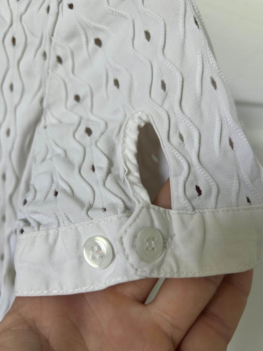 le polo est accompagné des ces boutons pour fermer le col et de petit froufrou pour les recouvrir.