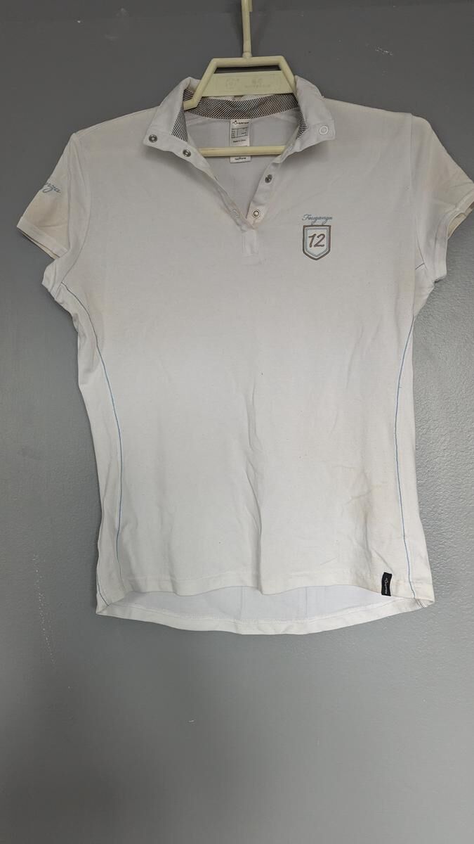 Polo de concours blanc, Fouganza, manches courtes avec détails bleu clair