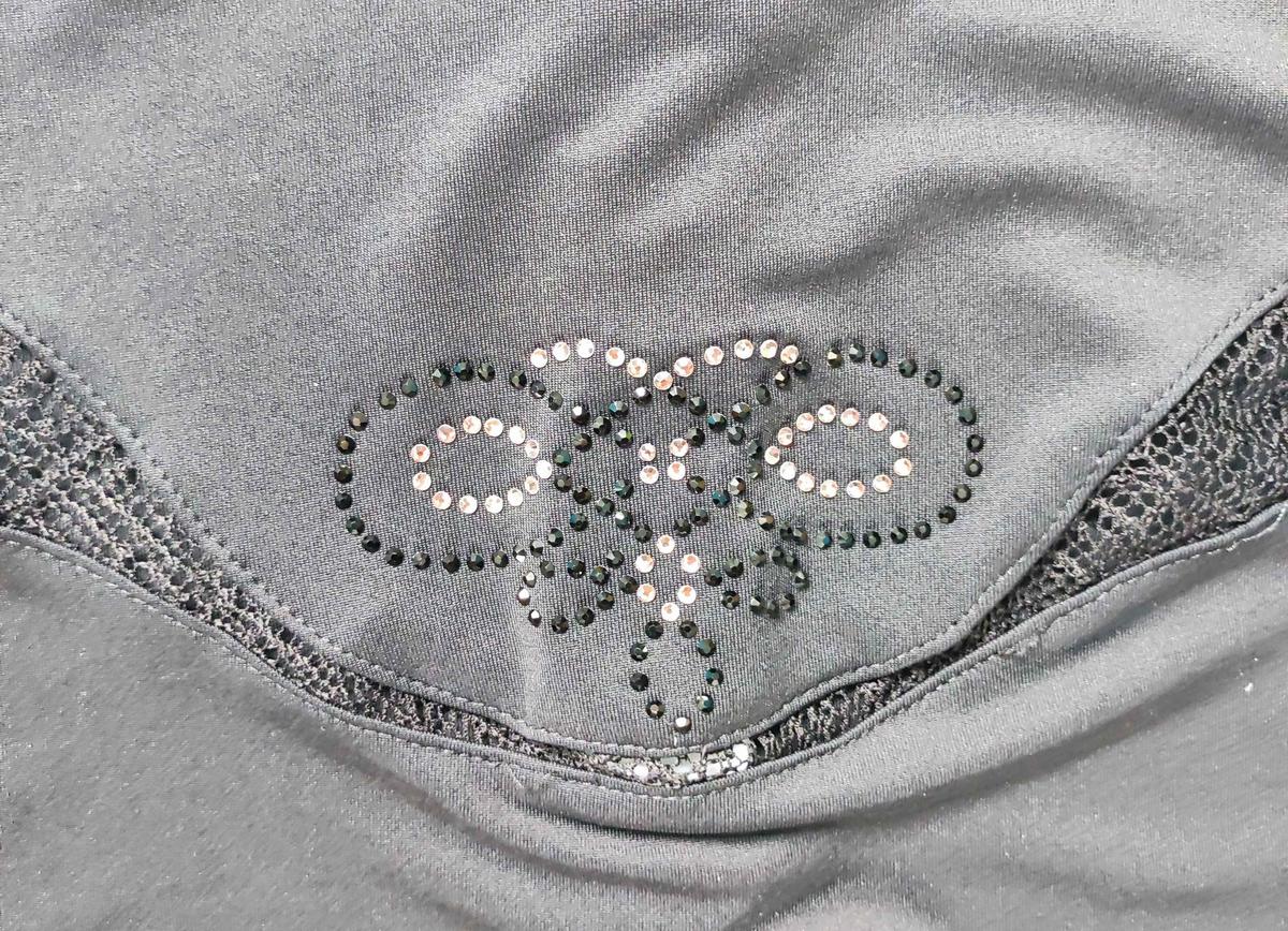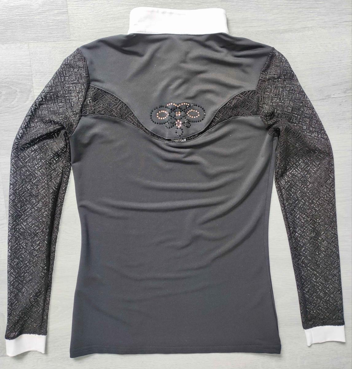 Haut de concours manches longues dentelle, marque Fair Play, couleur noir, taille: S, manque aucun strass, état proche du neuf.