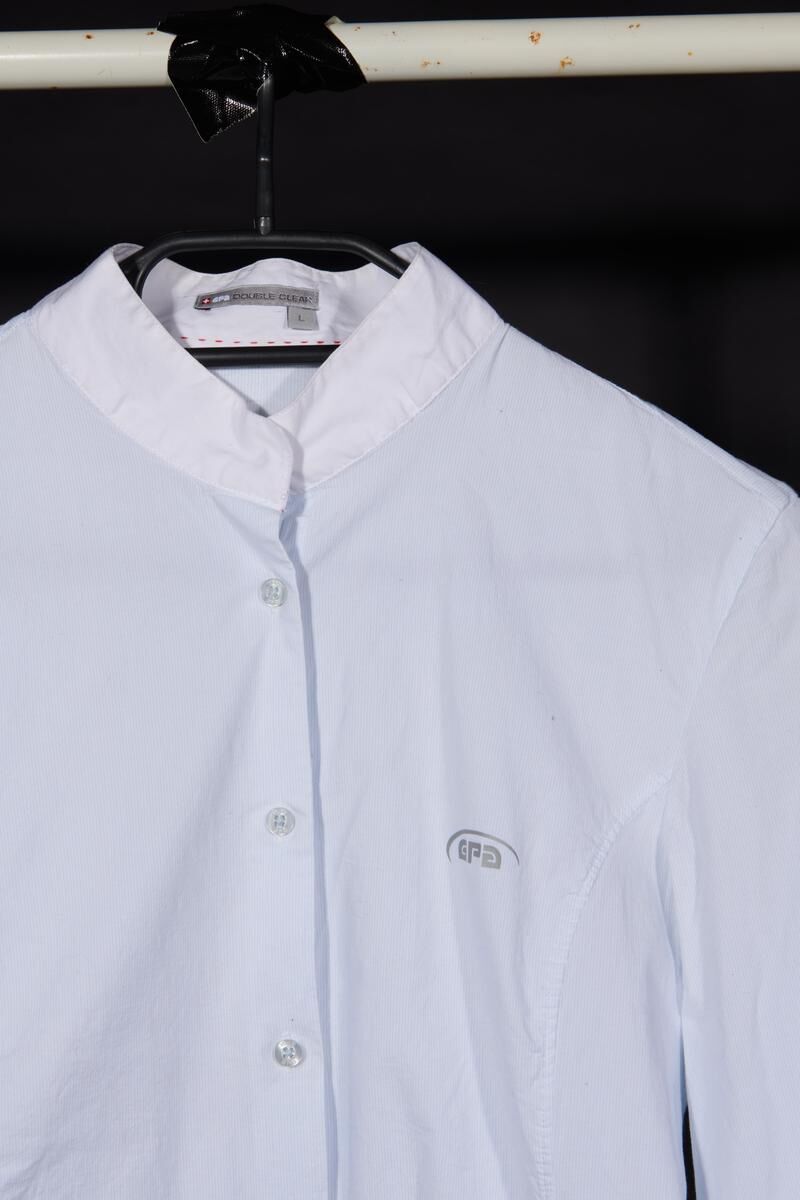 Chemise de concours manches longues GPA bleu ciel avec motif coté droit taille L.