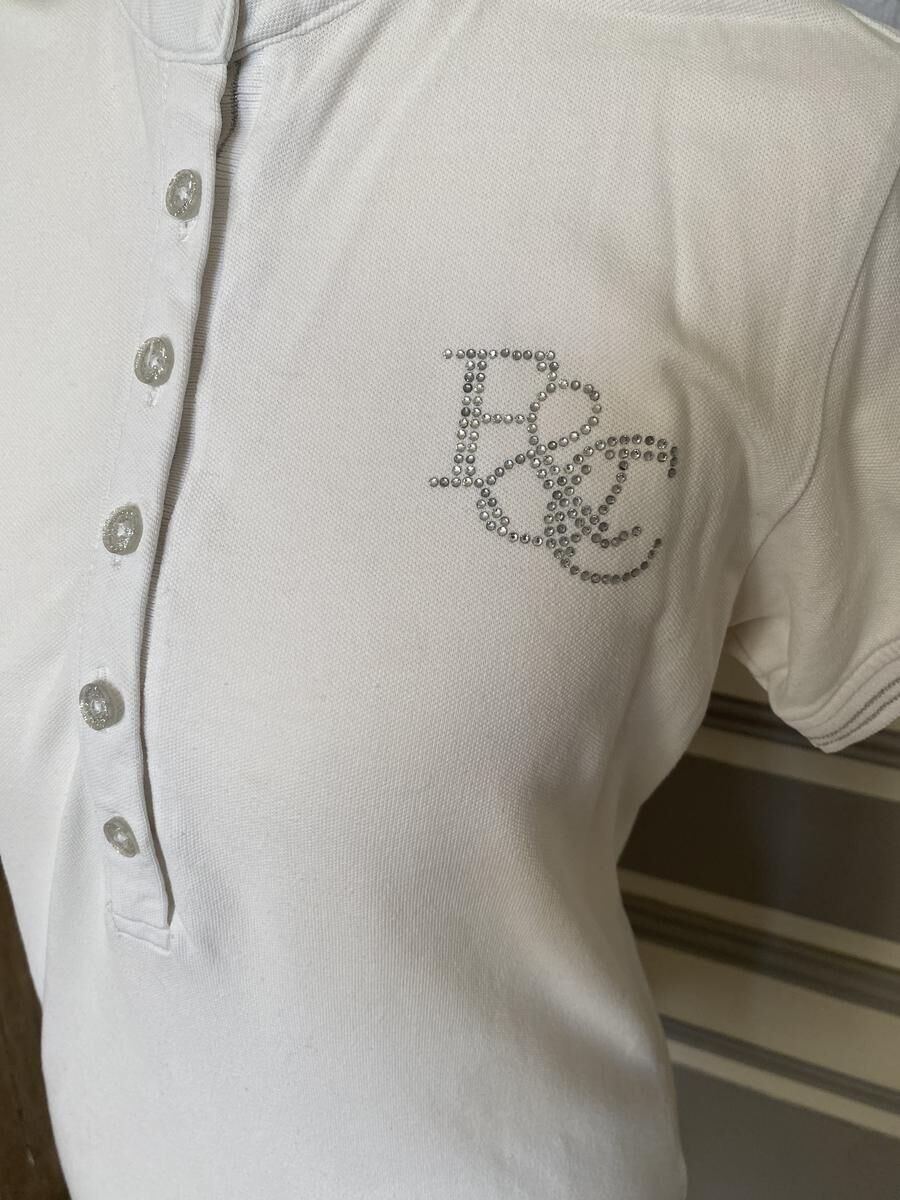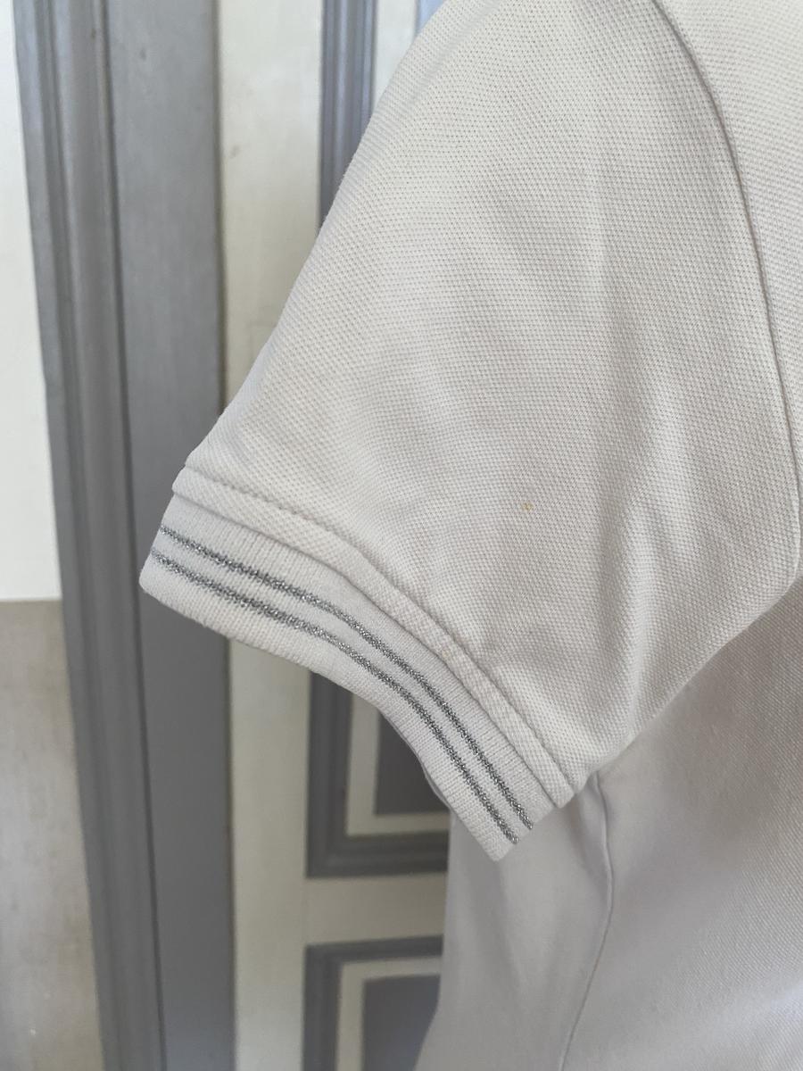Polo de concours manches courtes blanc en coton. boutonnage argenté. Logo poitrine F&C en "diamants". Extrémités des manches avec un liseret argenté. Dernière fermeture du col par aimant. Très bon état