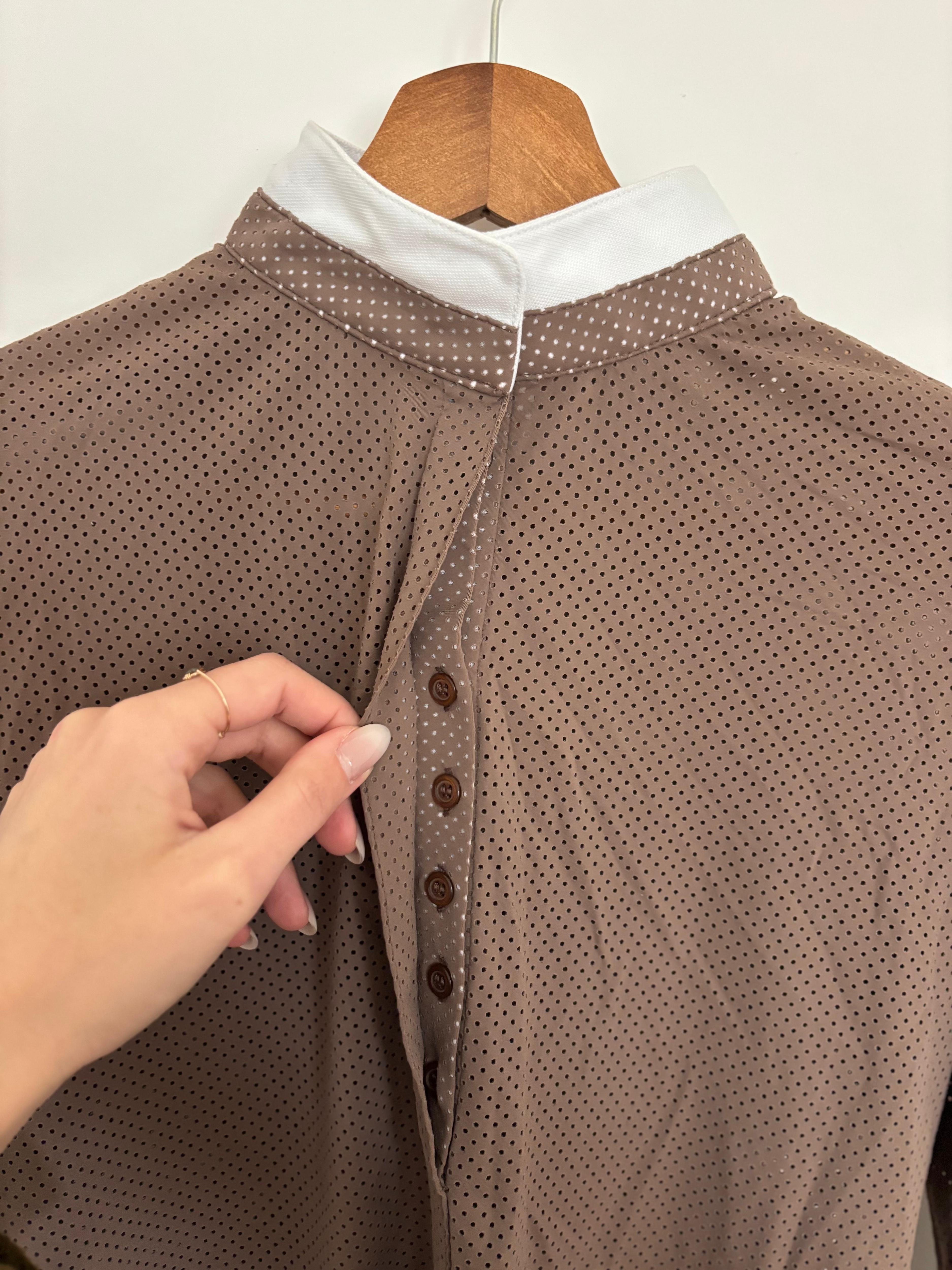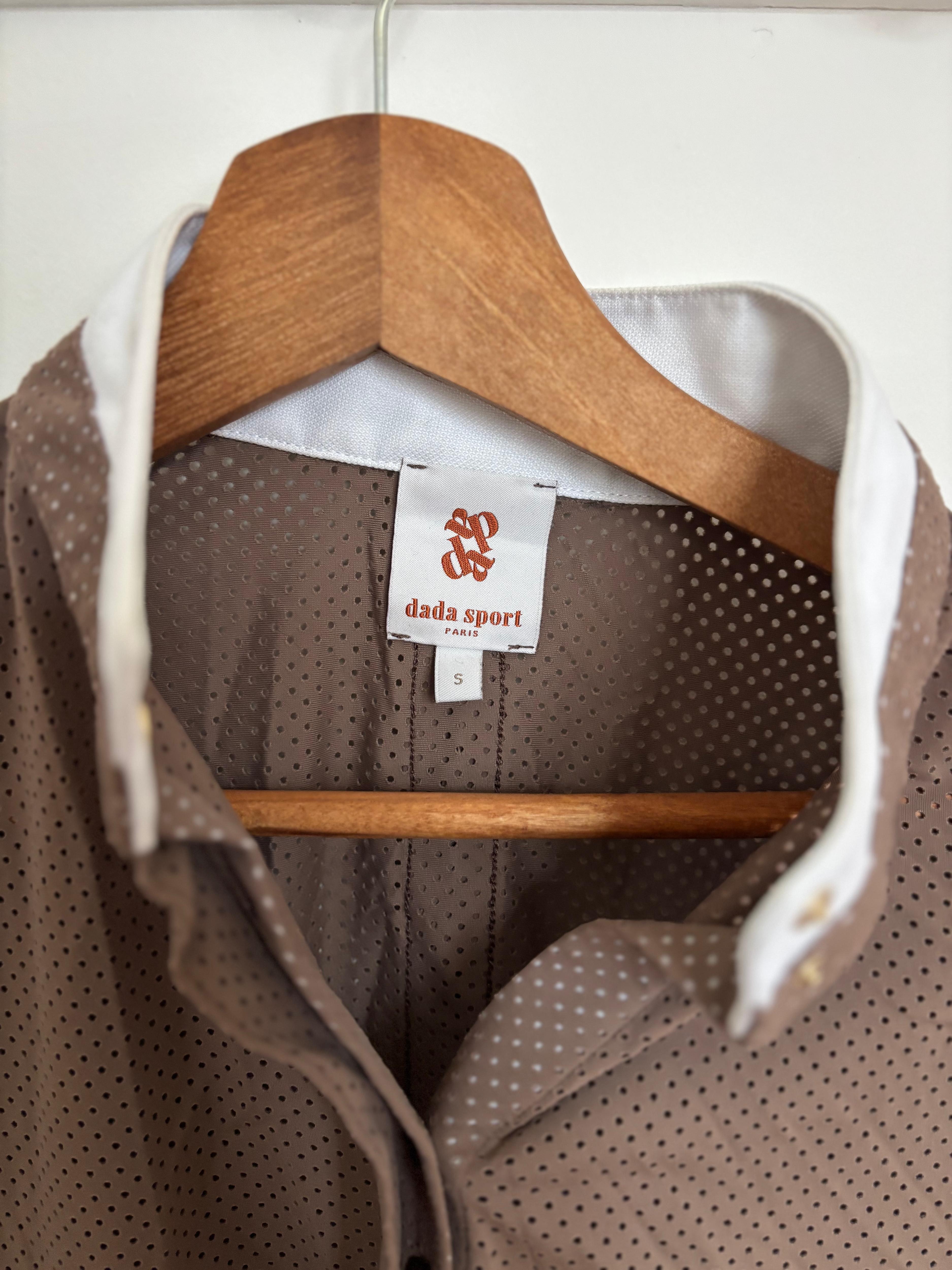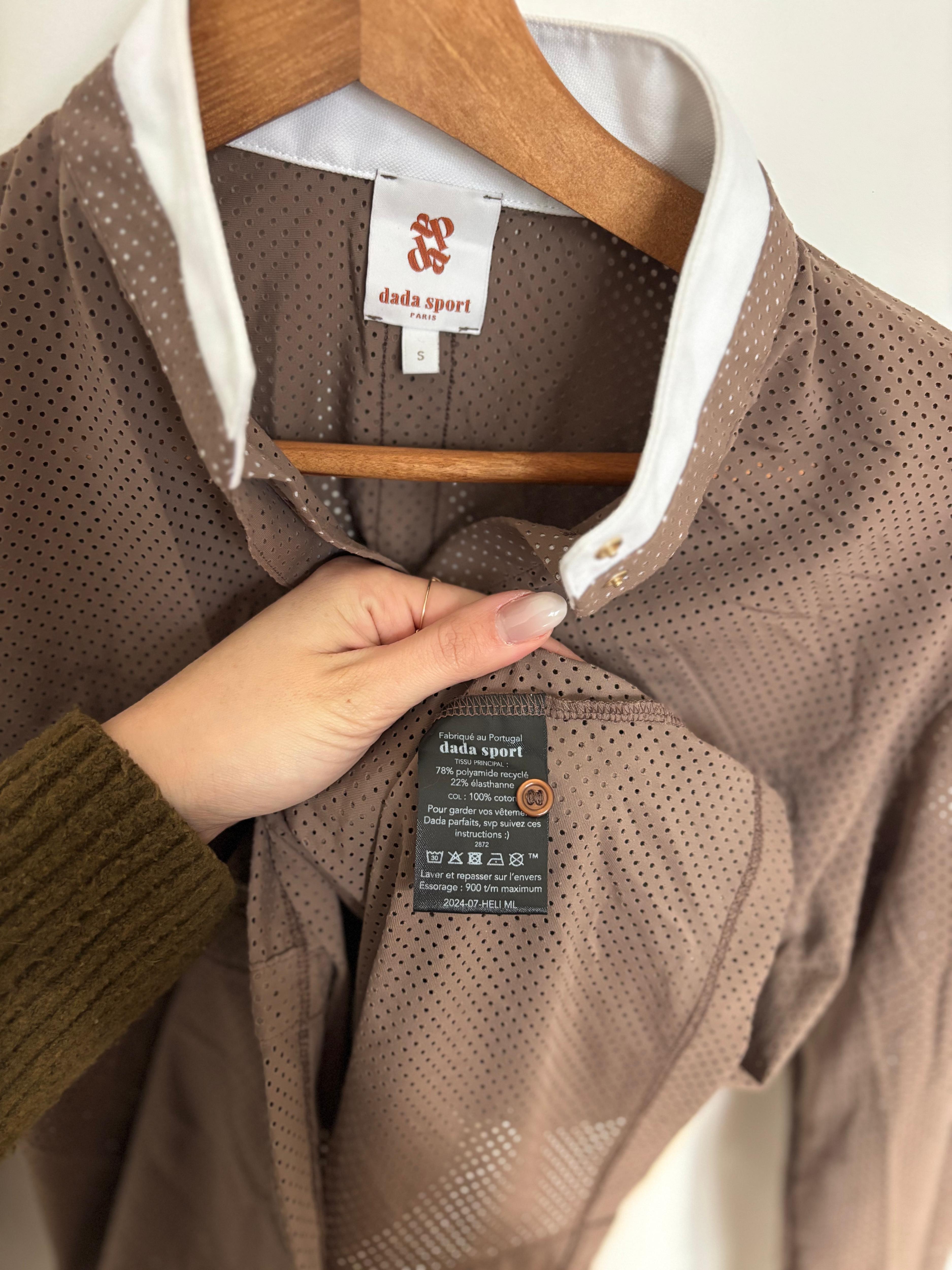 Polo de concours haut de gamme de la marque Dada Sport, modèle Helios manches longues, taille S. Vendu 160 € neuf, porté seulement 2 fois — quasiment à l’état neuf ! Coupe cintrée très flatteuse, col officier rigide avec boutons invisibles. Tissu italien ultra technique : respirant, séchage rapide, protection UV et traitement antibactérien. Fabriqué au Portugal.
