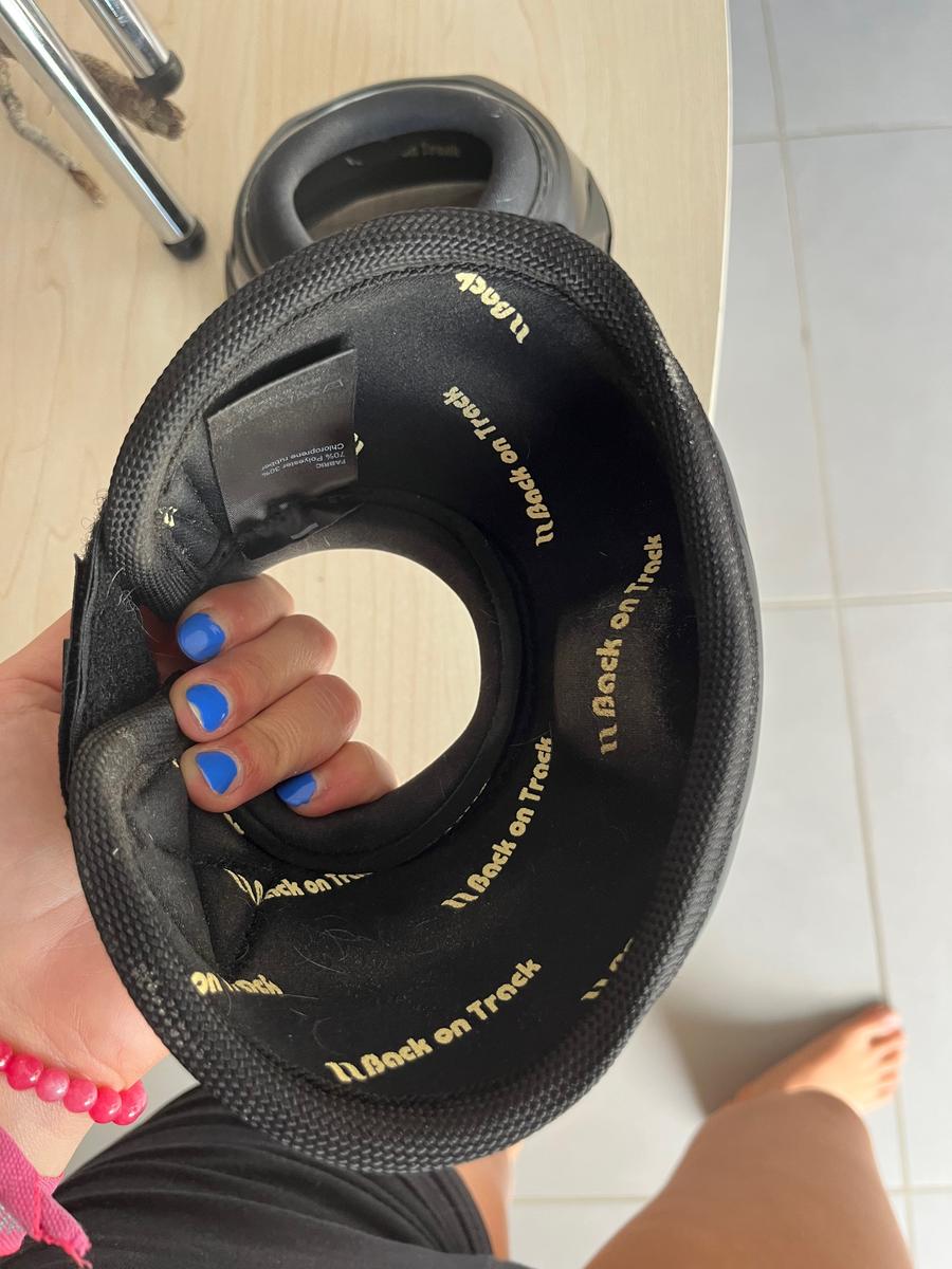 cloche noir back on track en matière dur (pas en tissus) taille poney D. Porté une seule fois, neuves.
