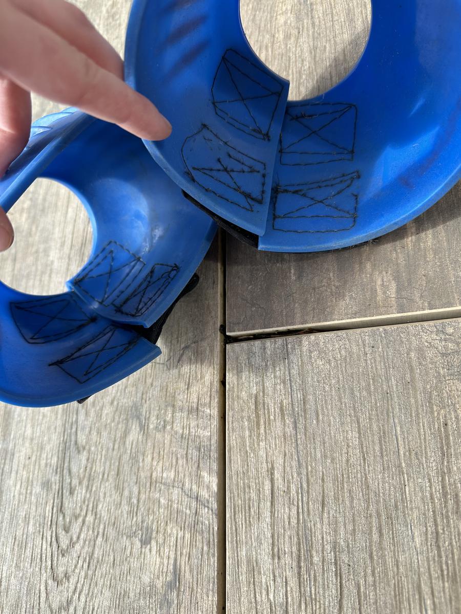 Cloches taille M bleu roi , les scratch n’ont rien car elles ont été mise 2 x donc aucun défaut