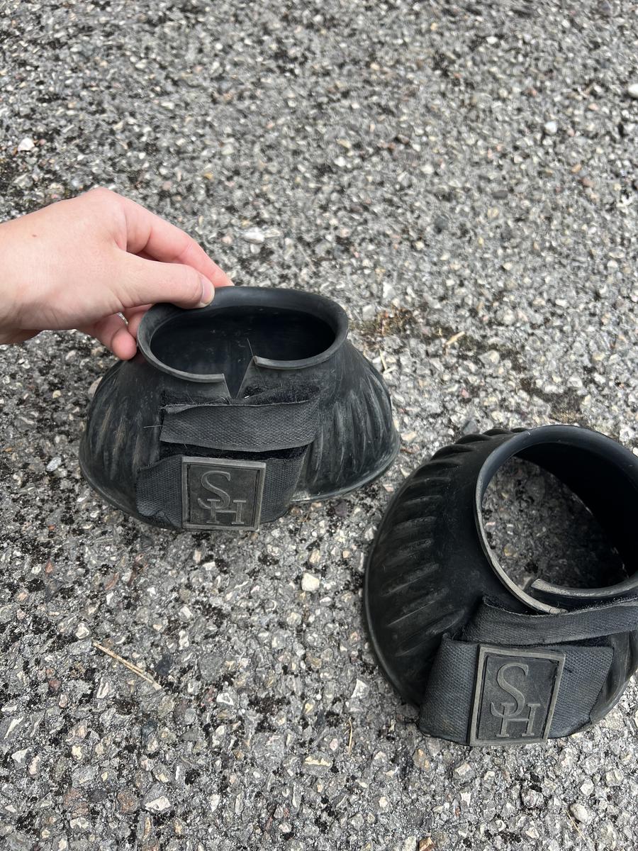 Cloches caoutchouc noire pour poney/cob cheval, réglable.