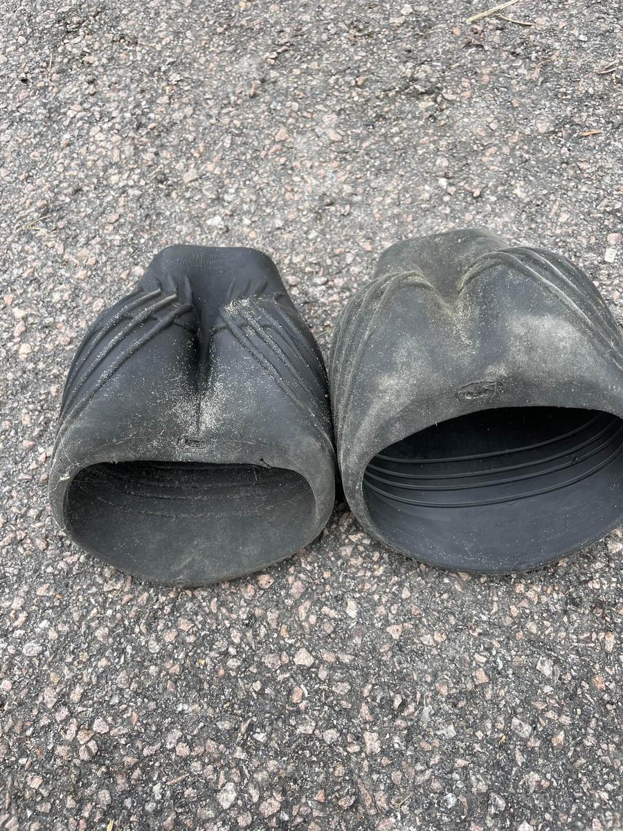 porté peu de fois, facile à mettre et enlever, prend bien la forme du pied et ne bouge pas quand le cheval travail. très élastique. taille poney