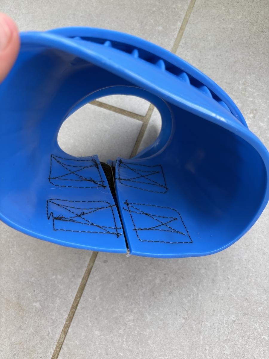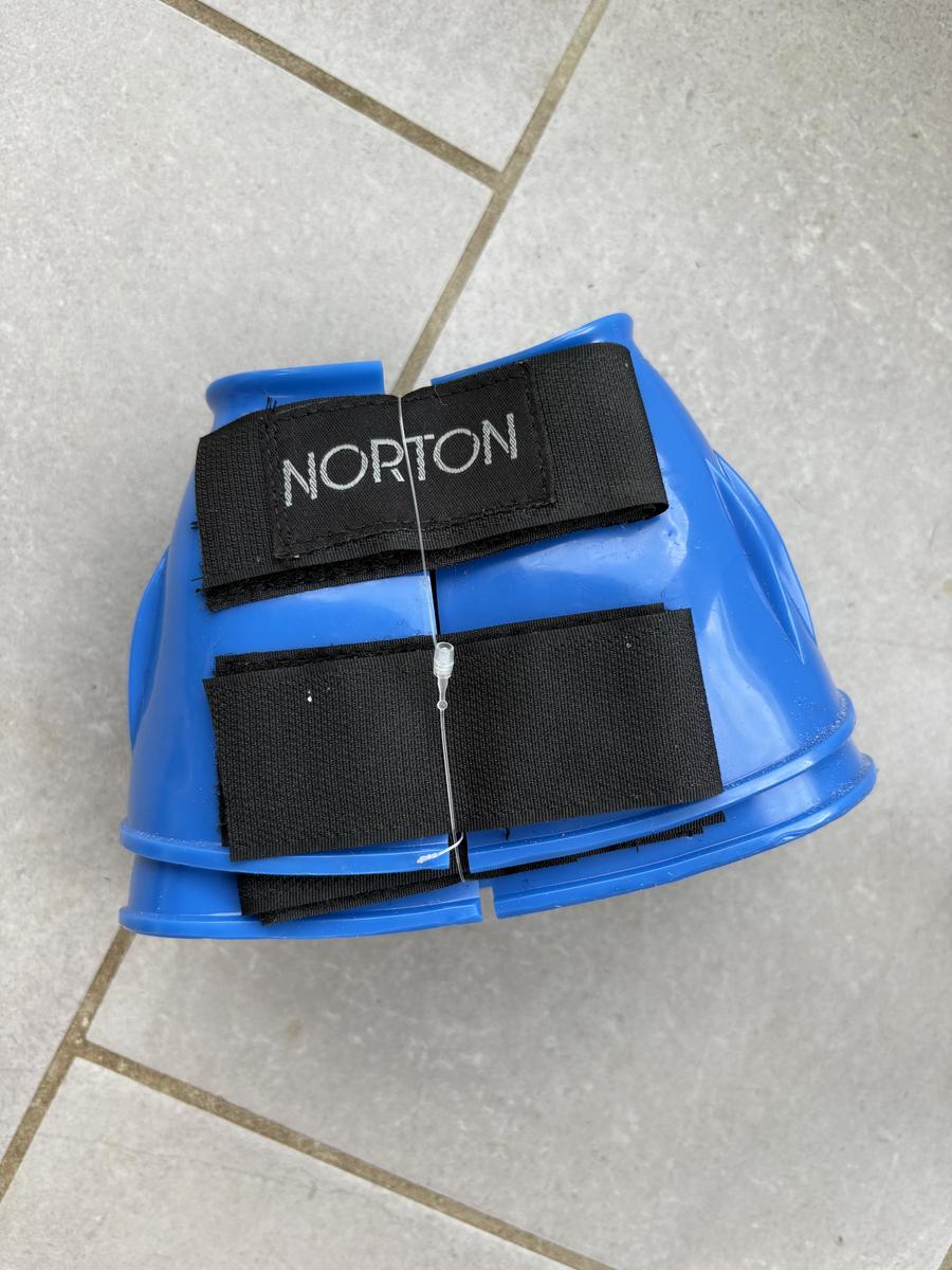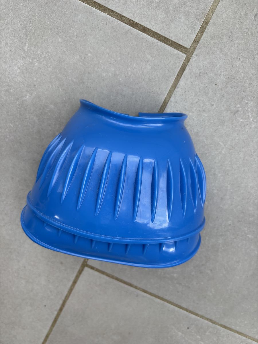 Cloches en PVC bleues électriques, idéales pour protéger les sabots avec un usage régulier. Fermeture en velcro. Neuves sans étiquettes mais encore avec le lien.