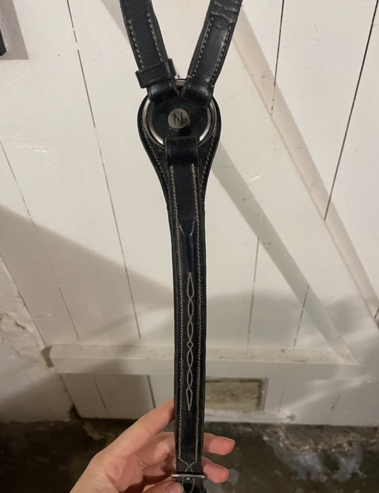 Collier de chasse noir Norton taille cheval en trois points avec surpiqure.