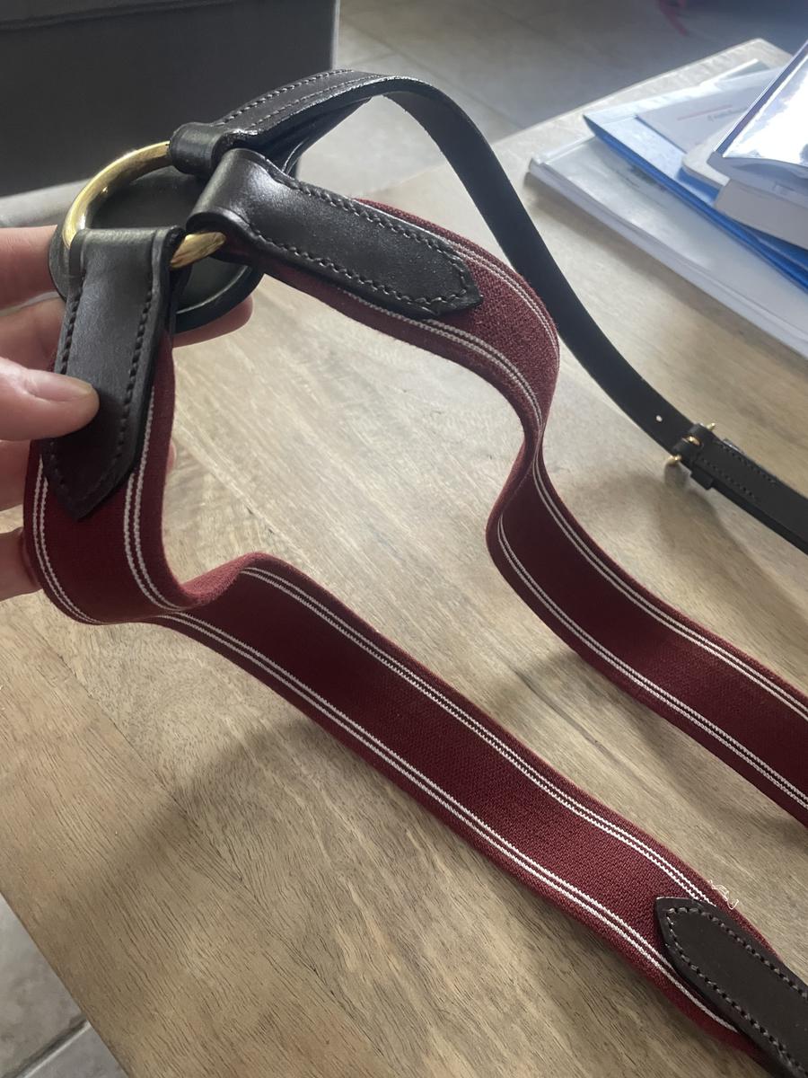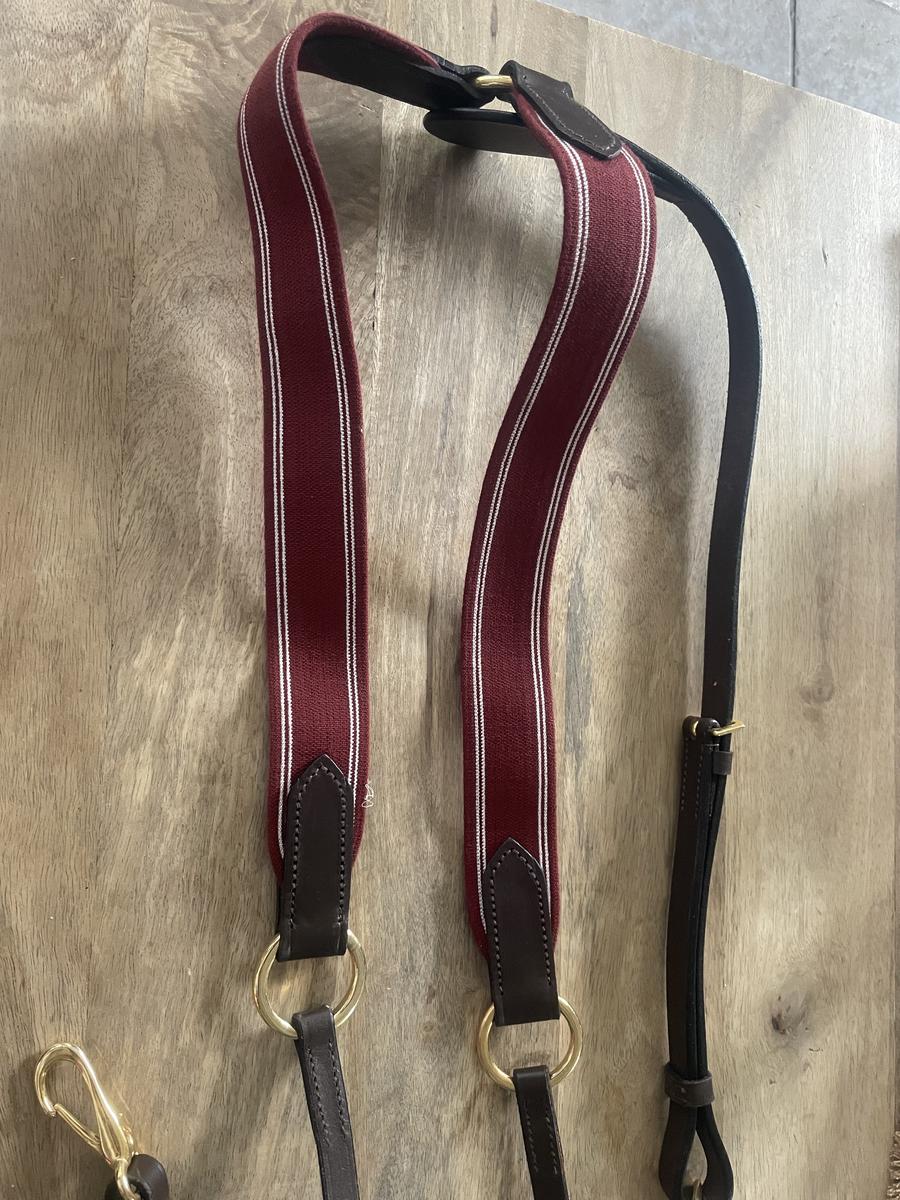 Collier de chasse en cuir marron avec élastique bordeaux neuf