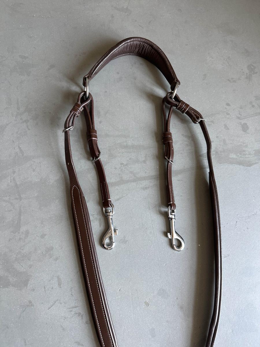 Souple, résistant et confortable, cet enrênement est facile à mettre grâce à ses mousquetons d'attache.