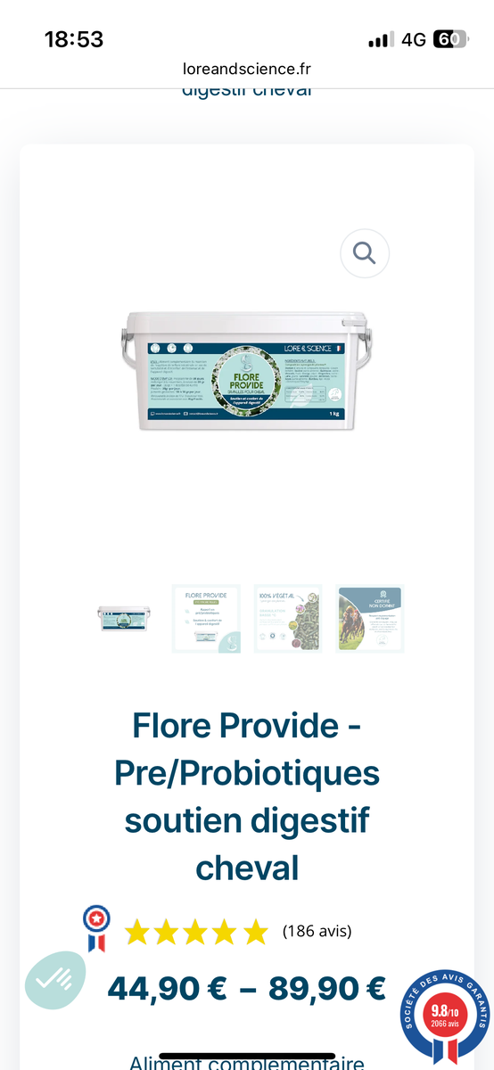 Aliment complémentaire composé d’une synergie de prébiotiques et probiotiques (inuline, levures, plantes sèches à orientation digestive, acide aminé : L. Glutamine) favorables au maintien et à la constitution d’une bonne flore intestinale chez le cheval.