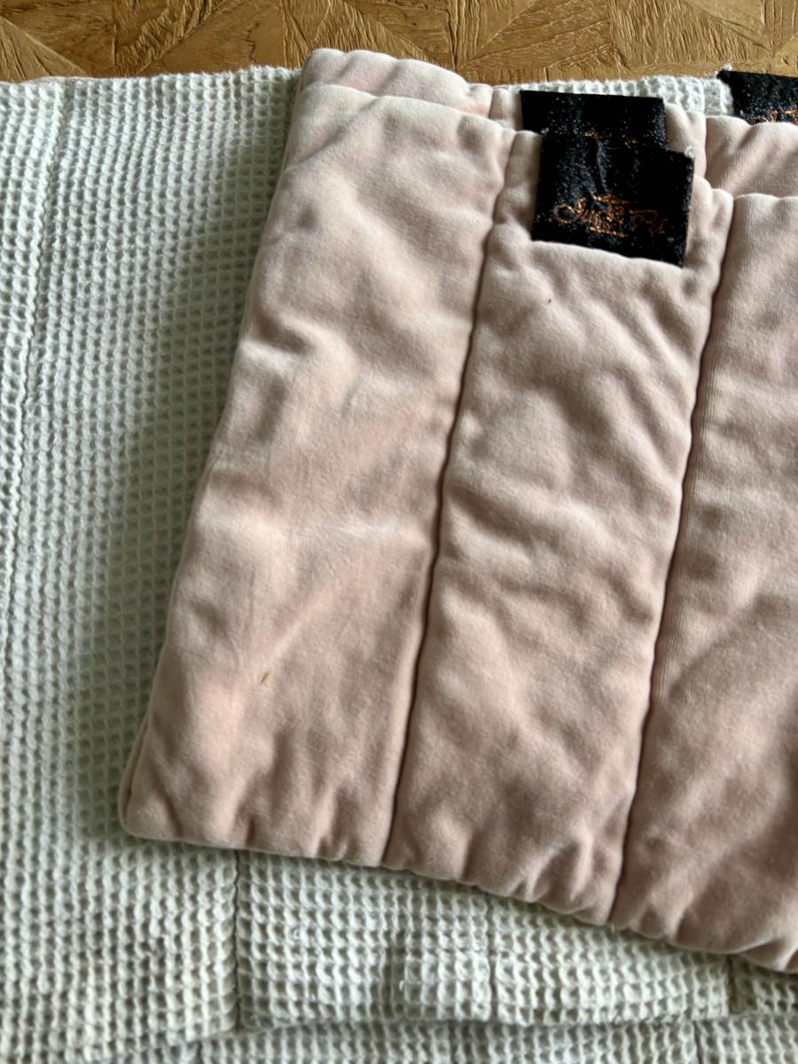 contons américains en velours rose de la marque Ju et Pa intérieur en nid d’abeille antérieurs et postérieurs taille poney D très bon état aucun accroc