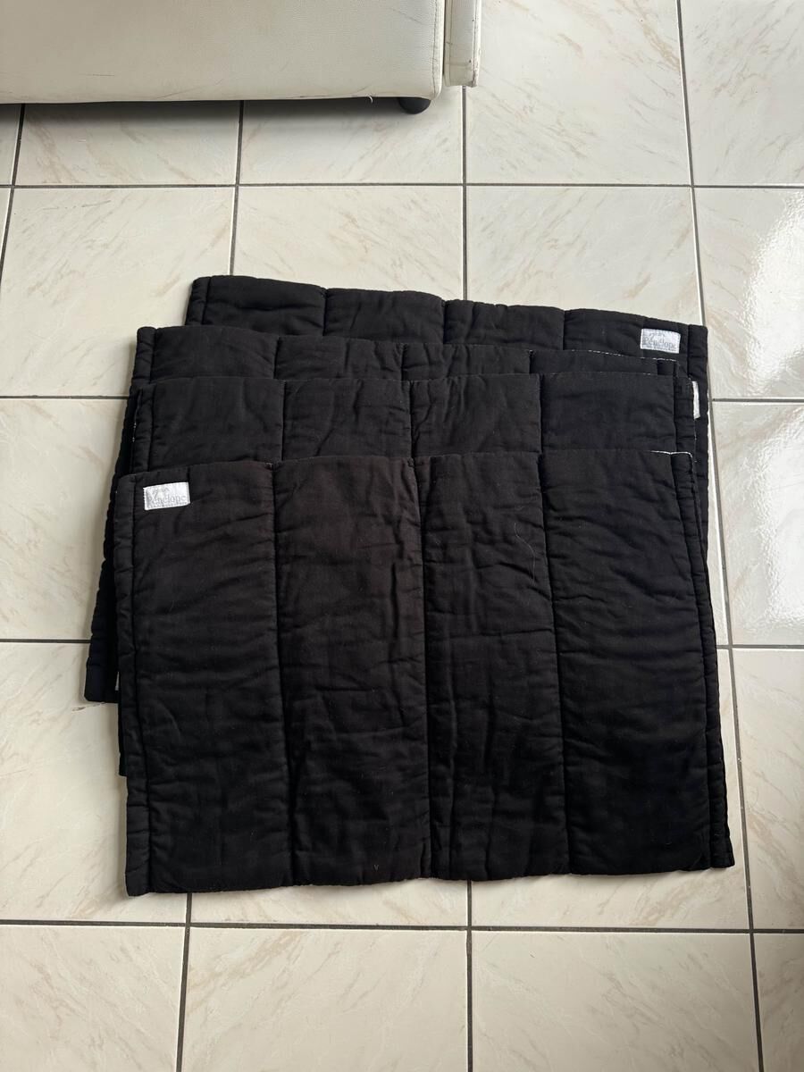Couleur extérieure : noir Intérieur : maille nid d’abeille gris clair Marque : Pénélope Taille : standard cheval Extérieur en très bon état Intérieur légèrement taché mais pas abîme du tout (visible en photo) Nettoyées Nneuf 69€ pour seulement 2