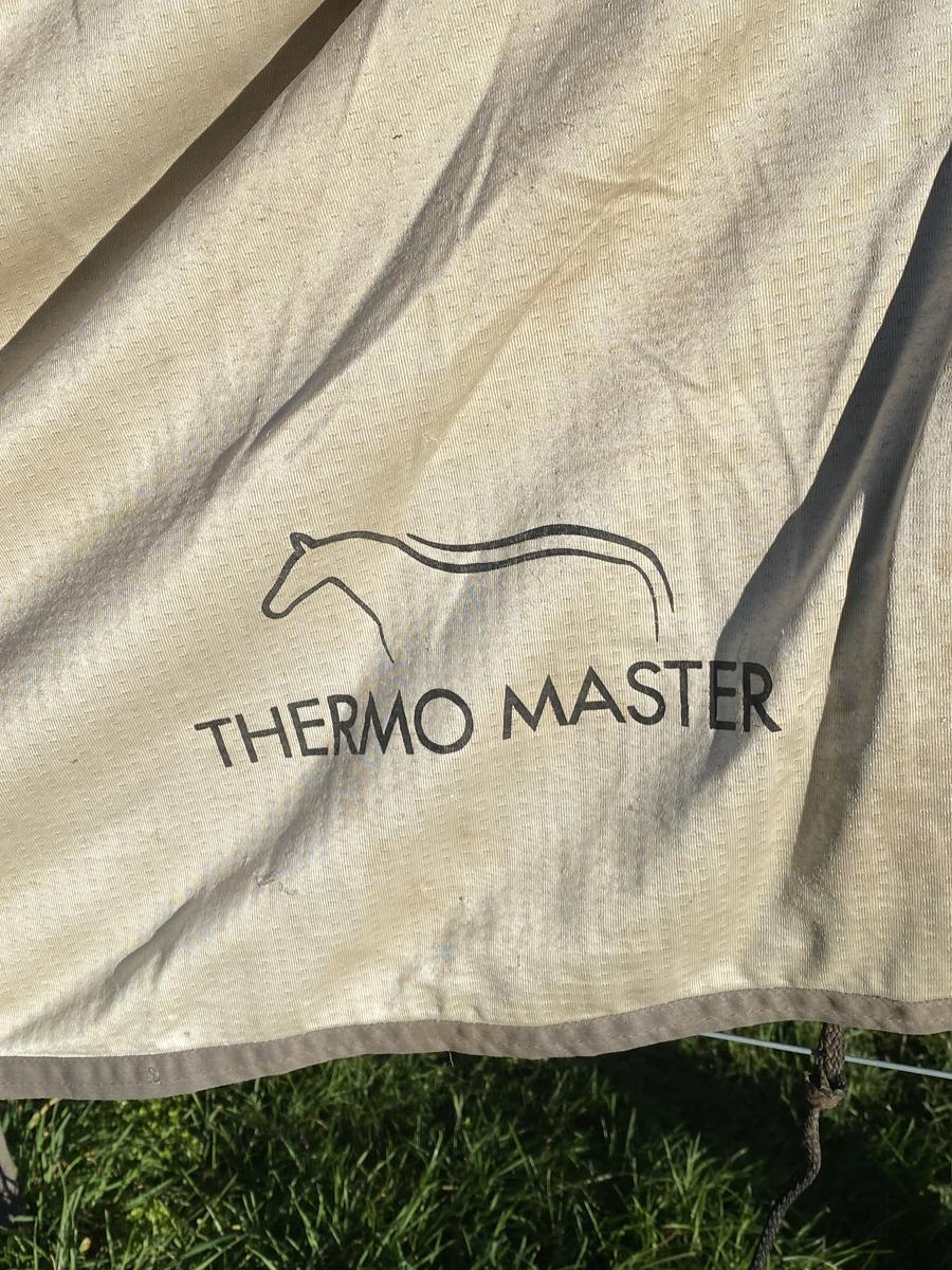 Couverture d’été thermo master qui régule aussi la chaleur pour le cheval. Très bon état et sera lavée avant envoi.